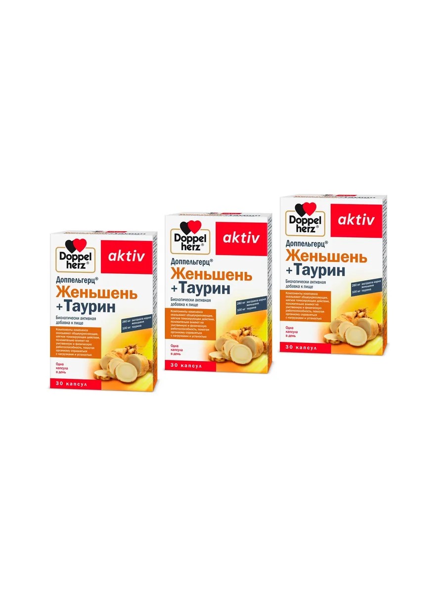 ДОППЕЛЬГЕРЦ Женьшень + таурин 30 капсул 3 шт