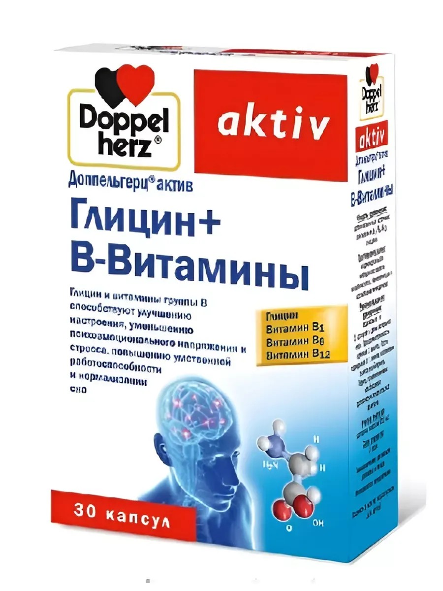 Доппельгерц Актив Глицин сочетает в себе аминокислоту глицин и витамины группы В. Эта добавка питания имеет положительный эффект на нервную систему и увеличивает устойчивость к стрессу. Кроме того, она может улучшить качество сна и повысить концентрацию внимания.