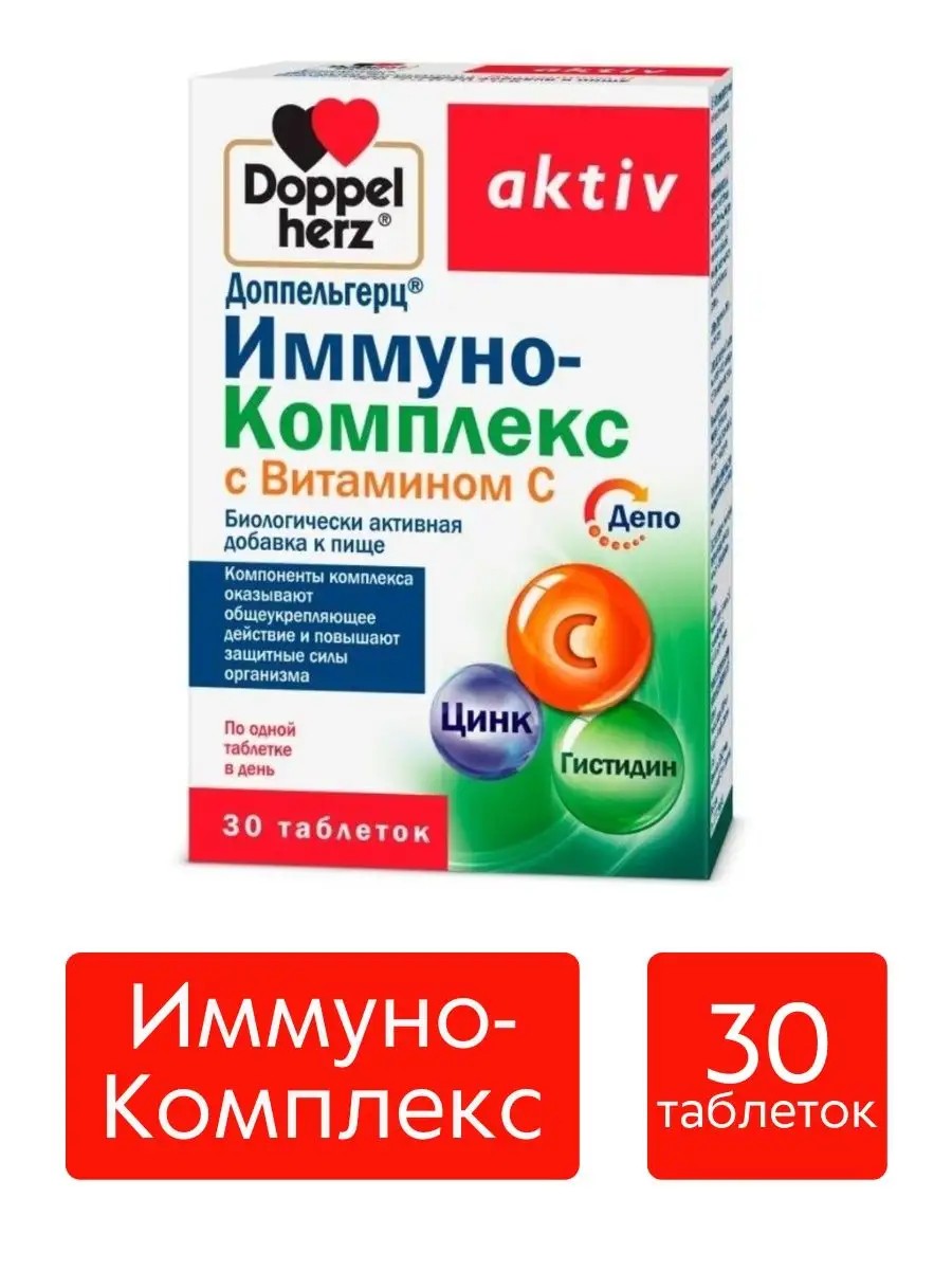 Doppelherz Doppelherz. An additional source of vitamin C and zinc. Adults take 1 tablet daily with meals and water. Duration of treatment is 1 month. If necessary, treatment can be repeated. Consult a doctor before use. Nutritional value: 1 tablet contains 11 kJ/3 kcal, fat 0 g, protein 0 g, carbohydrates 0 g. Instructions for diabetics: does not contain bread units. The components of the complex have a general strengthening effect and increase the body's defenses. Doppelherz aktiv Immuno-Complex with Vitamin C, 30 tablets