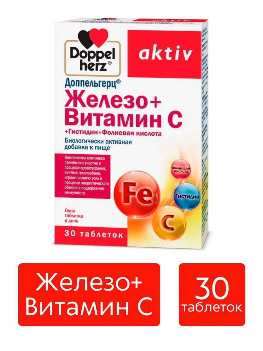 Doppelherz Doppelherz The components of the complex participate in the process of hematopoiesis (the formation of red blood cells), the synthesis of hemoglobin, which is responsible for the transport of oxygen in the blood, and also play an important role in maintaining immunity. Doppelherz aktiv Iron + Vitamin C + Histidine + Folic Acid