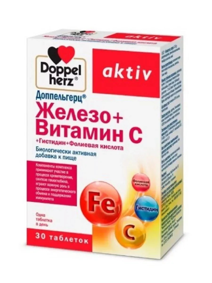 ДОППЕЛЬГЕРЦ Железо + Витамин C + Гистидин + Фолиевая к-та 30 таб.