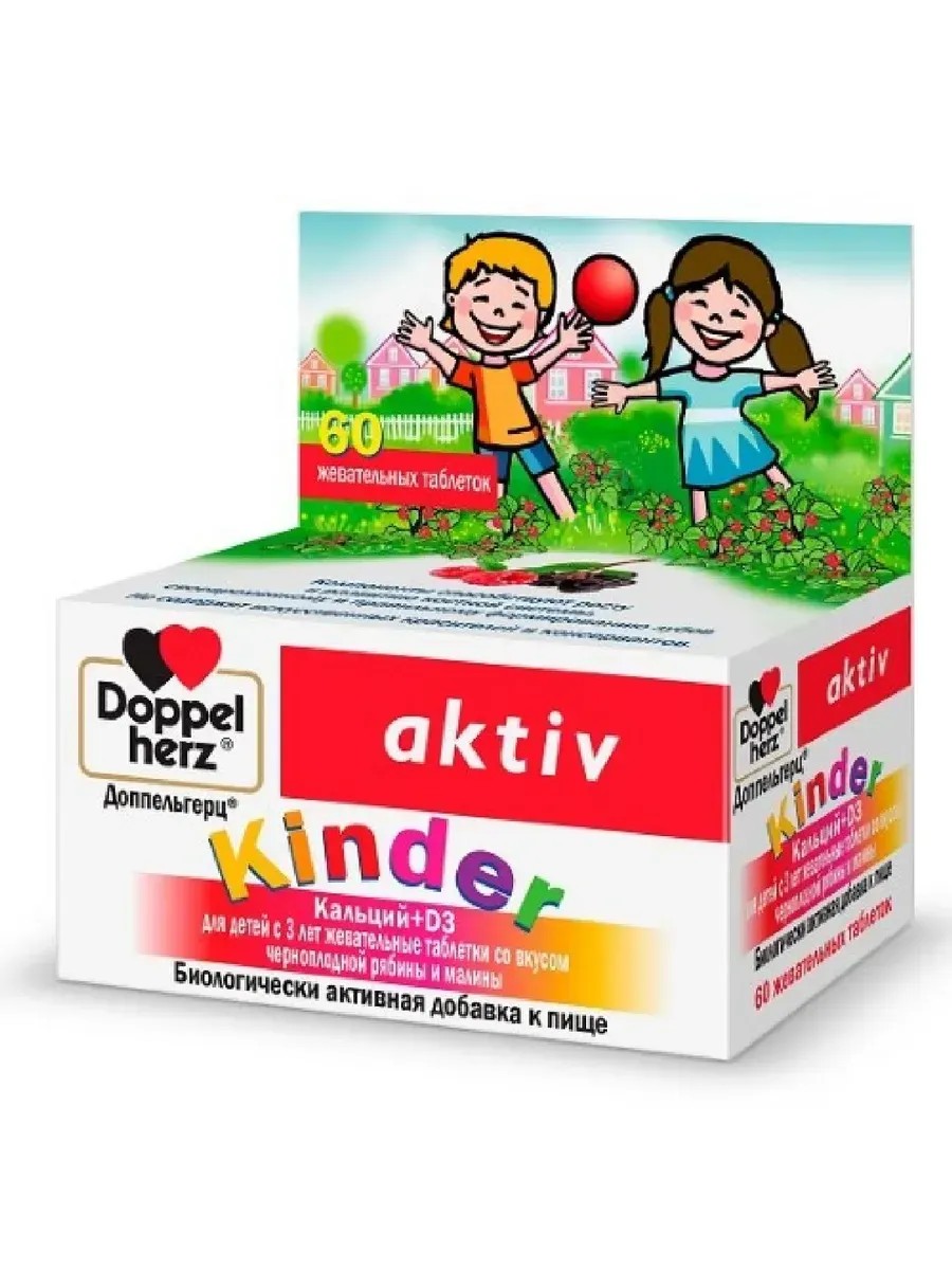 ДОППЕЛЬГЕРЦ KINDER КАЛЬЦИЙ+D3 Д/ДЕТЕЙ С 3 ЛЕТ СО ВКУСОМ ЧЕРНОПЛ РЯБИНЫ/МАЛИНЫ N60 ТАБЛ ЖЕВАТ ПО 1500МГ
