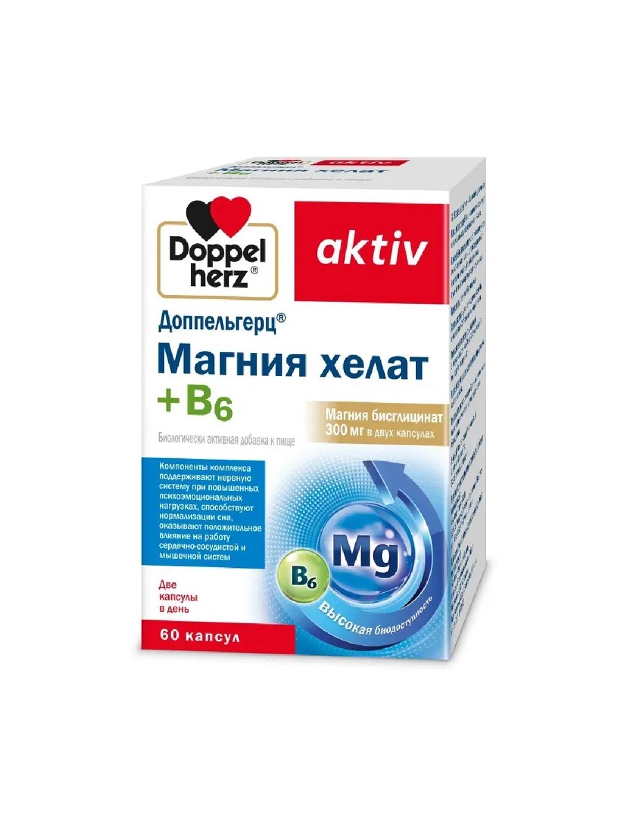 доппельгерц магния хелат+в6, 60 капс. по 965 мг -2 шт