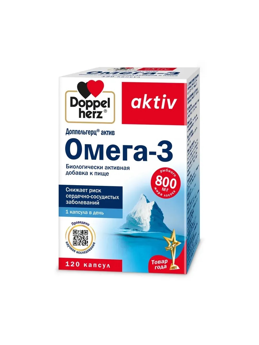 Доппельгерц Актив Омега-3 - это биологически активная добавка к пище, содержащая ценные жирные кислоты Омега-3, необходимые для поддержания здоровья кардиоваскулярной, нервной и иммунной систем. Применение капсул Доппельгерц Актив Омега-3 помогает снизить уровень холестерина в крови, снизить риск развития сердечно-сосудистых заболеваний, улучшить когнитивные функции и поддержать общее здоровье организма. Каждая упаковка включает 120 капсул, достаточно на 2 месяца использования