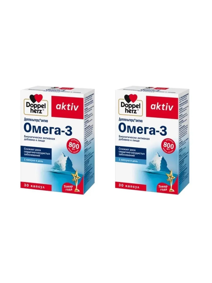 Doppelherz Актив Омега-3, 30 капсул по 1186 мг х 2 уп
