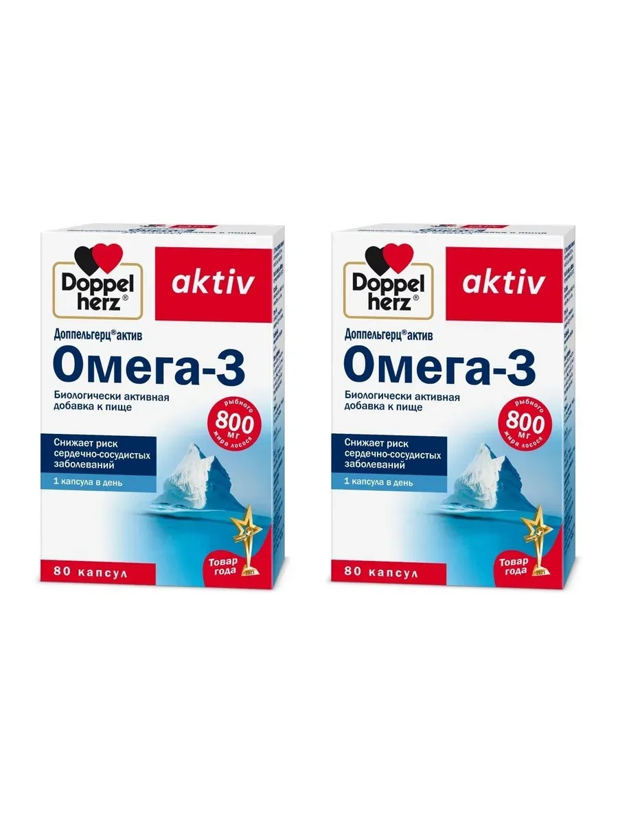 Doppelherz Актив Омега-3, 80 капсул по 1186 мг х 2 уп