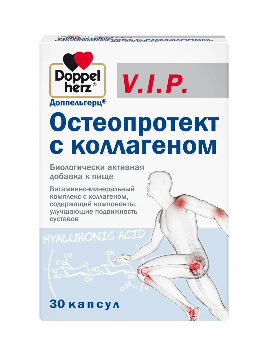 Доппельгерц V.I.P. Остеопротект с коллагеном - витаминно-минеральный комплекс с коллагеном, содержащий компоненты, улучшающие подвижность суставов.