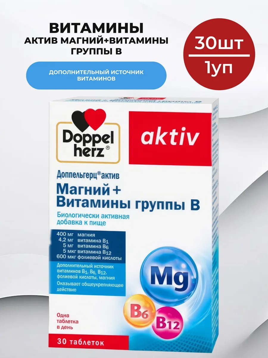 ДОППЕЛЬГЕРЦ Витамины актив магний+витамины группы В 30 шт - 1уп