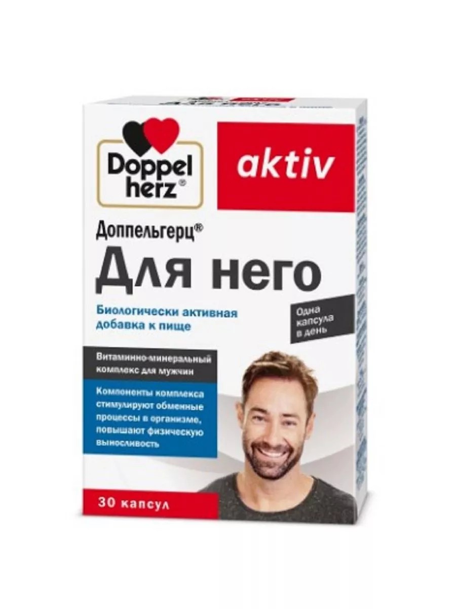 Доппельгерц Актив для него - это биологически активная добавка (БАД) к пище, специально разработанный витаминно-минеральный комплекс для мужчин, заботящихся о здоровье своего организма. Компоненты комплекса стимулируют обменные процессы в организме, повышают физическую выносливость и способствуют нормальной работе сердечно-сосудистой системы. Полезен для поддержания жизненного тонуса и сексуальной функции.