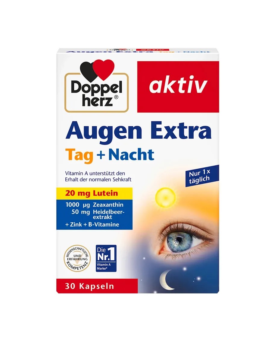Наши глаза используются каждый день, будь то чтение, работа или вождение. С помощью пищевой добавки от Доппельгерц вы сможете поддерживать свое зрение во время повседневной работы. Как бы вы ни бросали вызов своим глазам, с капсулами Eye Extra Day + Night вы сможете снабдить свой организм необходимыми веществами. Они содержат витамин А и цинк, которые помогают сохранить зрение. Биологически активная добавка также содержит лютеин, зеаксантин и экстракт черники.