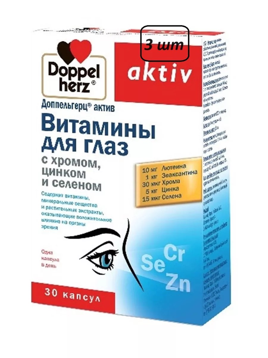 Доппельгерц актив витамины для глаз с хромом цинком и селеном это биологически активная добавка к пище, созданная специально для поддержания здоровья глаз. Препарат содержит мощную комбинацию природных компонентов, необходимых для нормального функционирования зрительной системы. В составе Доппельгерц актив витамины для глаз присутствуют хром, цинк и селен, которые являются важными микроэлементами, необходимыми для поддержания здоровья глаз и улучшения зрения. Также комплекс содержит витамины А и Е, которые улучшают зрительную функцию и способствуют обновлению клеток глазного яблока.Принимается Доппельгерц Актив Витамины для глаз в виде капсул, одна упаковка содержит 30 штук. Рекомендуется принимать по одной капсуле в день во время еды. Препарат не содержит ГМО и искусственных красителей. Этот комплекс рекомендуется людям, которые столкнулись с проблемами зрения и хотят восстановить его без применения сильных лекарств.