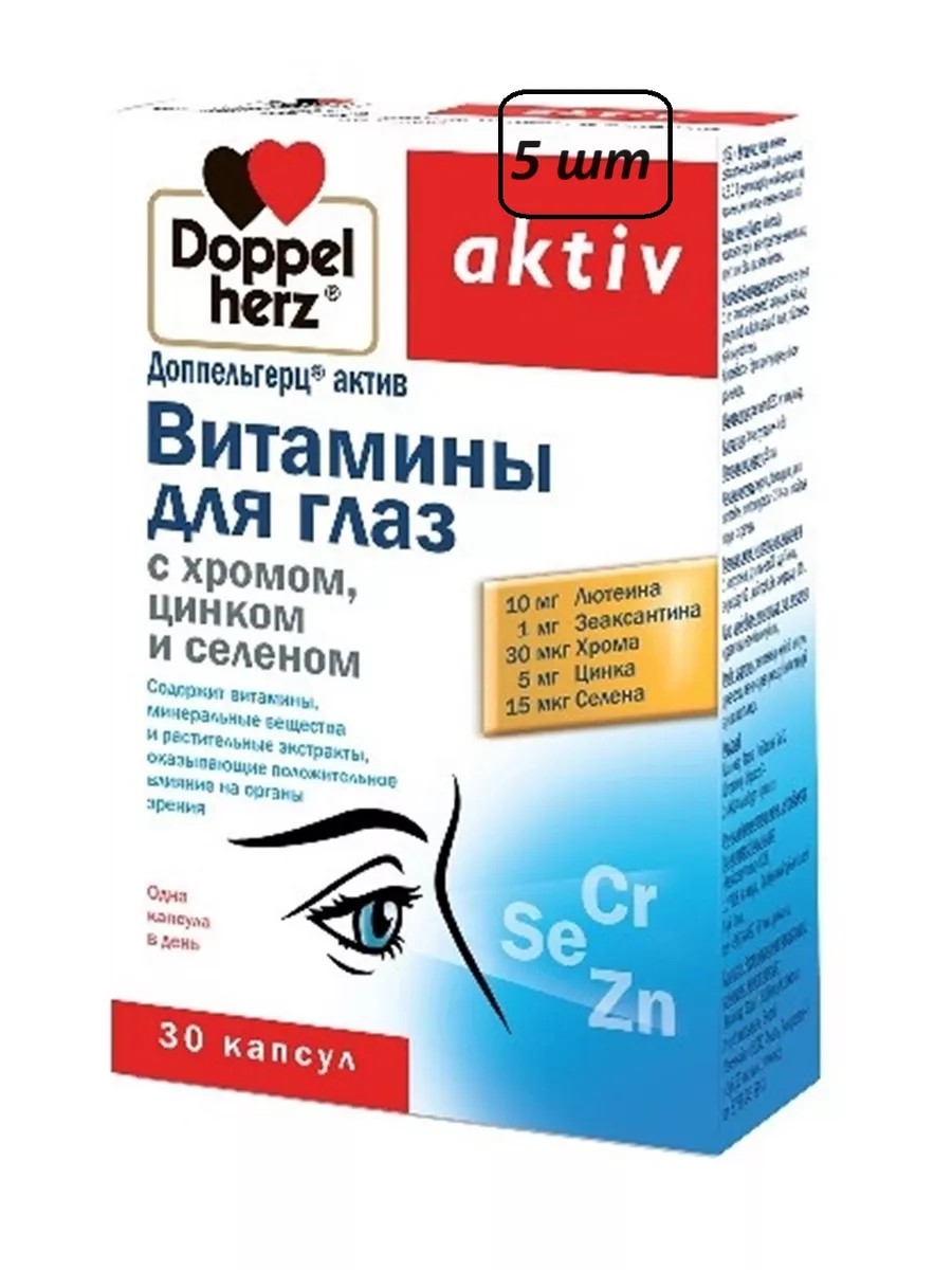 Доппельгерц актив витамины для глаз с хромом цинком и селеном это биологически активная добавка к пище, созданная специально для поддержания здоровья глаз. Препарат содержит мощную комбинацию природных компонентов, необходимых для нормального функционирования зрительной системы. В составе Доппельгерц актив витамины для глаз присутствуют хром, цинк и селен, которые являются важными микроэлементами, необходимыми для поддержания здоровья глаз и улучшения зрения. Также комплекс содержит витамины А и Е, которые улучшают зрительную функцию и способствуют обновлению клеток глазного яблока.Принимается Доппельгерц Актив Витамины для глаз в виде капсул, одна упаковка содержит 30 штук. Рекомендуется принимать по одной капсуле в день во время еды. Препарат не содержит ГМО и искусственных красителей. Этот комплекс рекомендуется людям, которые столкнулись с проблемами зрения и хотят восстановить его без применения сильных лекарств.