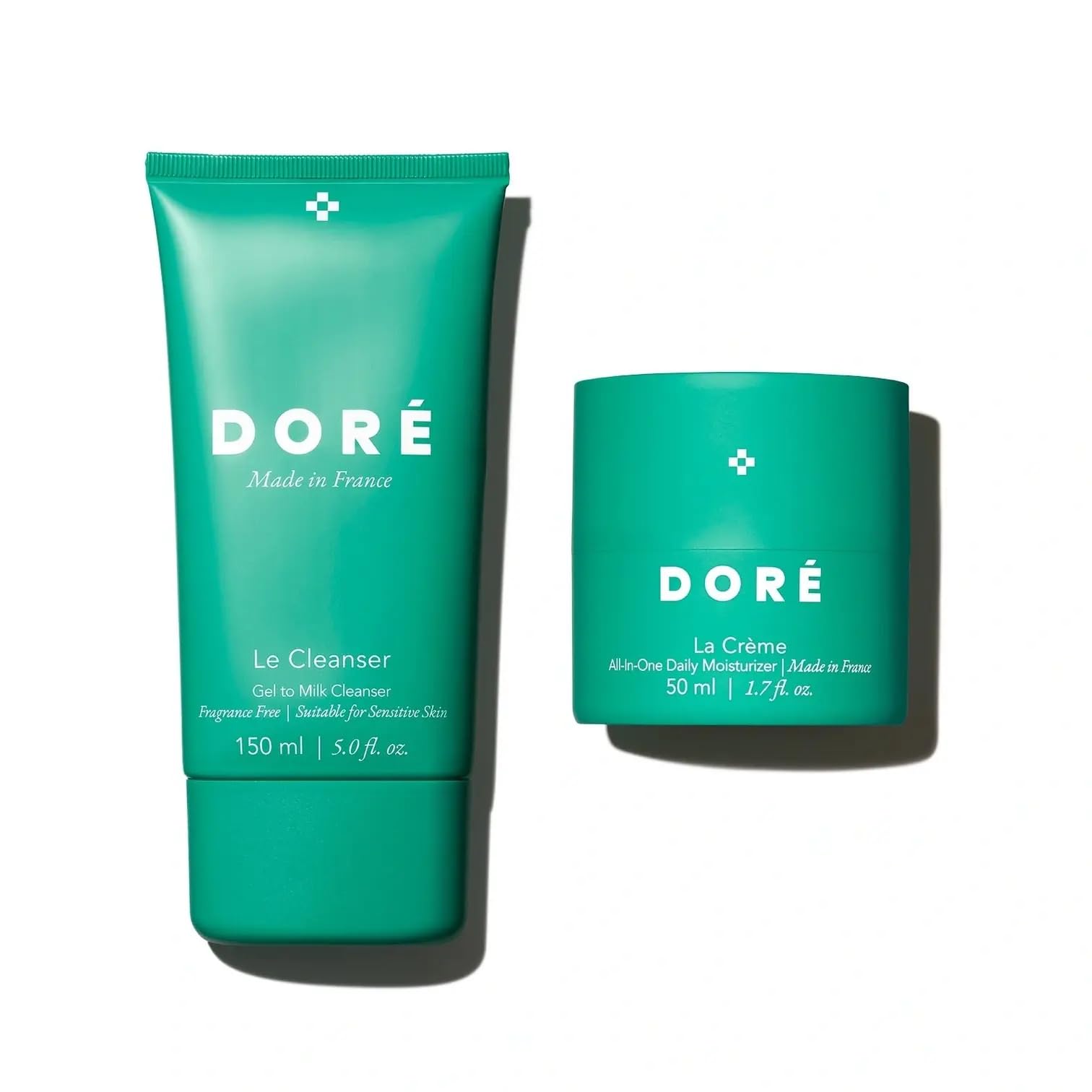 Elevate your skincare routine with this thoughtfully curated Doré Skincare Set, featuring two essentials: Le Cleanser, a hydrating gel-to-milk facial cleanser that removes makeup, sunscreen, and impurities without stripping your skin, and La Crème, a deeply nourishing daily moisturizer designed to restore and protect your skin barrier. Perfect for all skin types—including dry, sensitive, and eczema-prone—this bundle delivers gentle, fragrance-free care powered by clean, effective ingredients. Crafted in France and rooted in simplicity, the Doré duo is your go-to for soft, hydrated, and radiant skin—day and night.