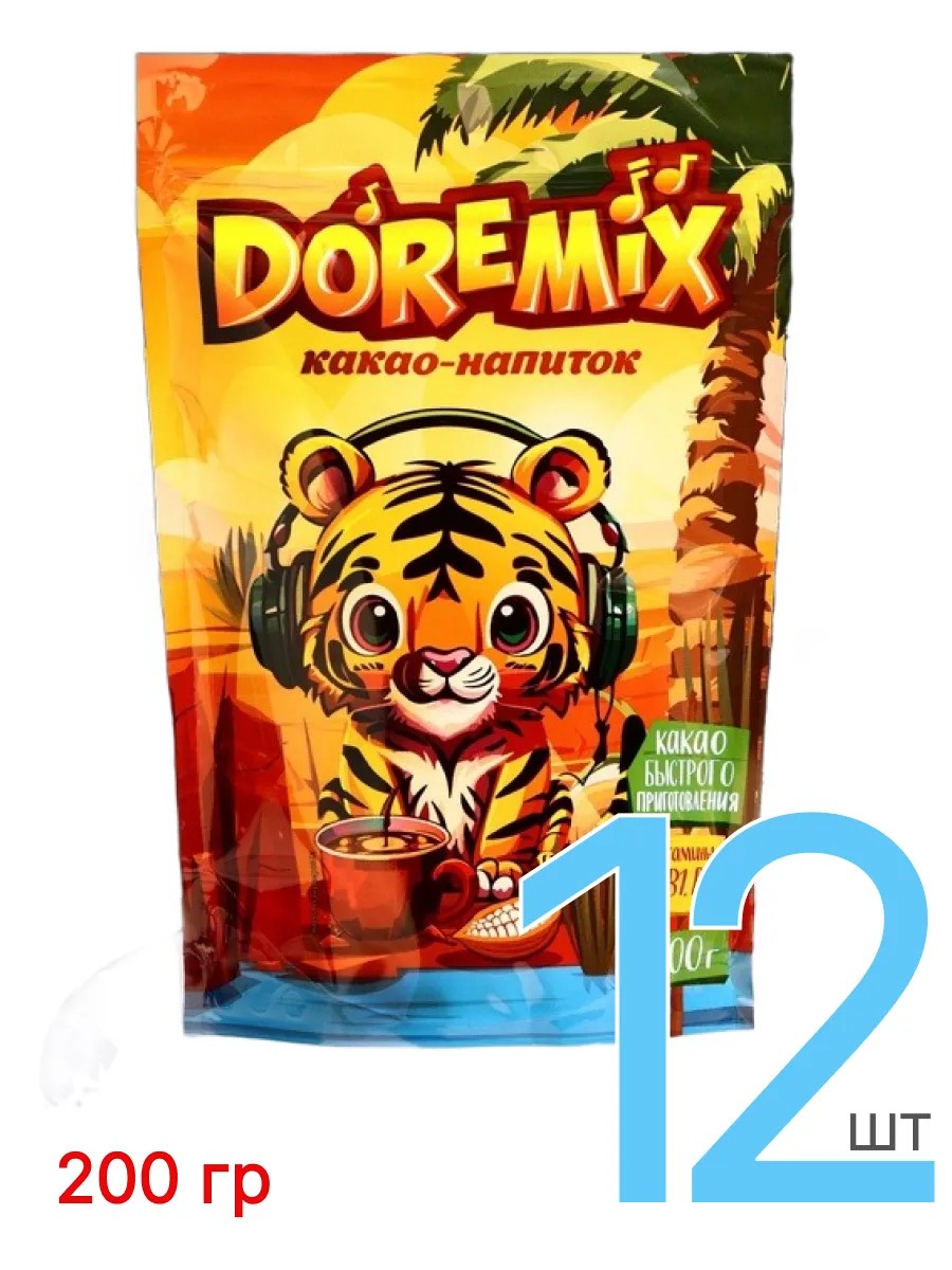 DoReMix Какао порошок натуральный с сахаром 200 г, 12 шт