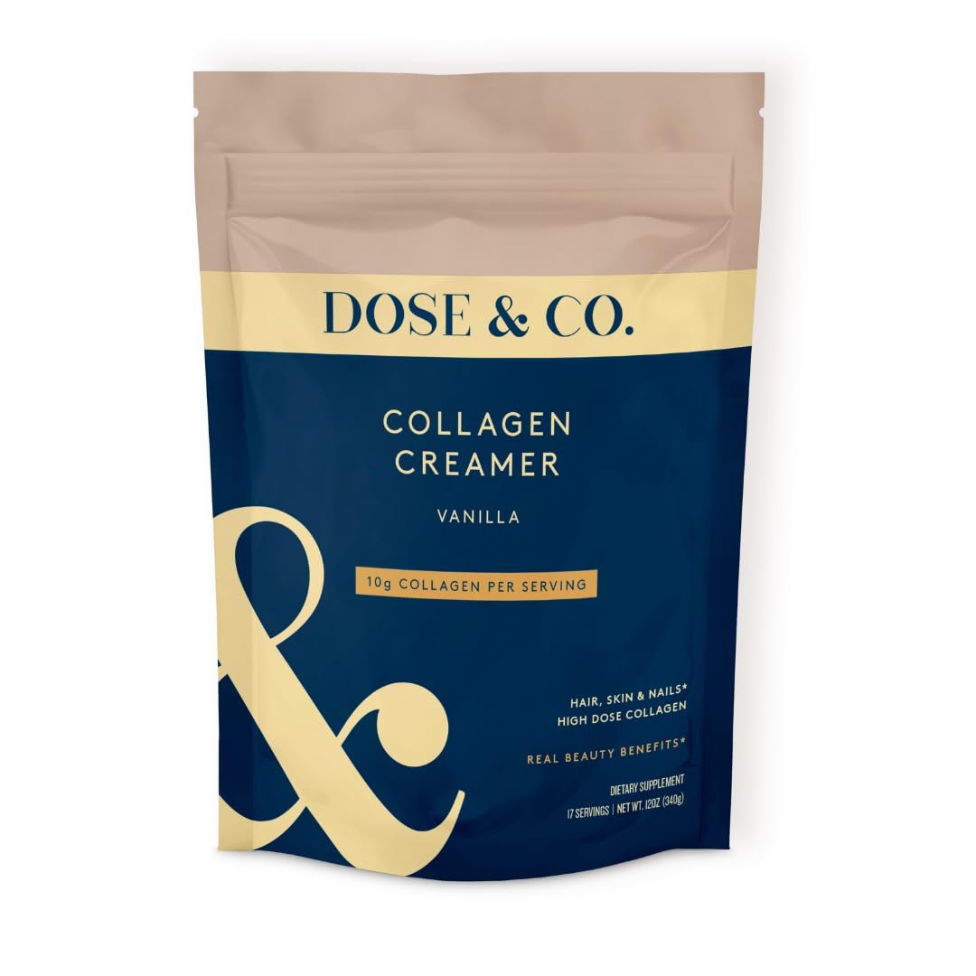 when taken daily and with a balanced diet Based on an extensive consumer perception study of 192 people, after 28 days of use. The Dose Co. Difference: Founded by a nutritionist backed by doctors, dermatologists and aestheticians, we believe beauty starts from within. That's why our collagen supplements are made mindfully with science-backed ingredients, and fit effortlessly into real lives. A daily dose that can bring about real and lasting change. How to Use: Enjoy as part of your morning beauty routine, before yoga class, post workout recovery, or to wind down at night. Add 1 heaped teaspoon (20g) of powder to 7 fl oz of your preferred beverage and mix well. One 12 oz pouch of vanilla collagen powder provides 17 servings, with 10g of collagen per serving. Easy Daily Use Self-Care Ritual: Designed to nourish your body from within, hydrolyzed collagen peptides complement protein intake as part of a balanced diet, promoting everyday nourishment and vitality to support the body's natural collagen framework. This flavored formula supports overall wellness and consistency, helping you stay mindful and motivated in your everyday nutrition habits. Clean Formulation: Sustainably sourced, made without GMOs, gluten, preservatives, hormones, artificial colors, flavors and sweeteners. No eggs and nuts. A clean, highly bioavailable collagen peptide option for both men and women who follow keto-friendly, allergen-conscious, or daily wellness and nutrition routines. Also available in dairy-free vanilla flavor. Creamy Vanilla Flavoured Versatility: Enjoy a smooth, café-style vanilla taste that blends easily into hot or cold drinks and recipes. Mix into water, coffee, lattes, smoothies, yogurt, oatmeal, or baked goods. An easy daily addition for wellness-minded users, from busy professionals to active lifestyle enthusiasts. Clinically Tested Results: Collagen is clinically shown to improve skin elasticity in 14 days, increase hydration in 6 weeks, and reduce fine lines in 4 weeks. This vanilla-flavored collagen powder supports smoother, firmer, youthful-looking skin. Use year-round as part of a balanced beauty and wellness routine. Delicious Collagen Made Easy: Boost collagen intake with a smooth vanilla collagen creamer. A tasty, beauty-supporting substitute for traditional creamers, with added beauty benefits. A convenient, rich vanilla base that adds a silky, creamy texture for a delicious upgrade in every sip. Multiple Beauty Benefits: Expertly formulated with natural Types I and III bovine collagen peptides to support skin tone, elasticity, and hydration for a more radiant, nourished appearance. Helps maintain hair volume and nail strength. 90 of users noticed improved skin quality, and 91 reported stronger, longer nails.