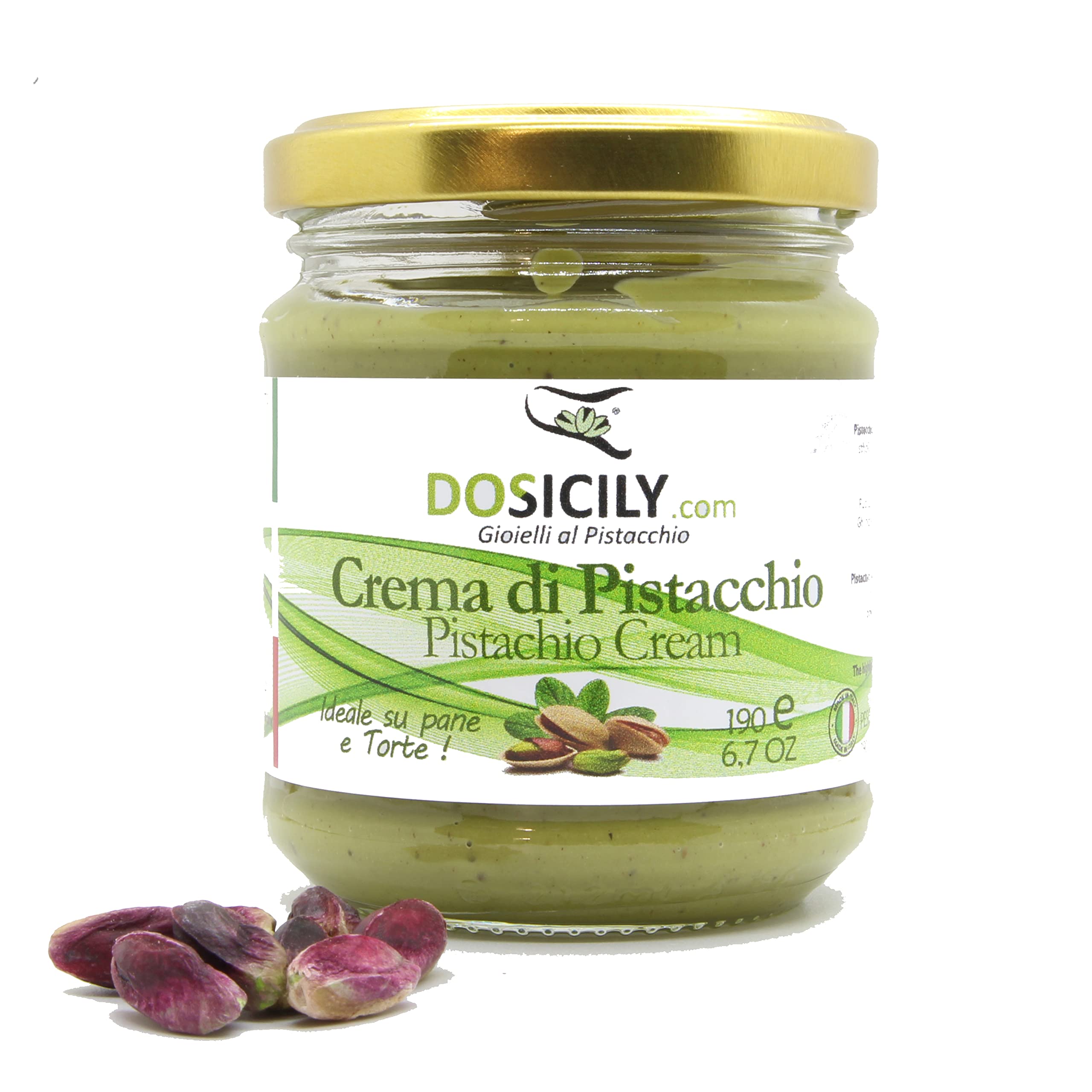 DOSICILY.COM DOSICILY - Cream of pistachios Sicily Spread on Bread and Slices Biscuits for stuffing pancakes and cakes. With 40% pistachios. 1 piece X 190g