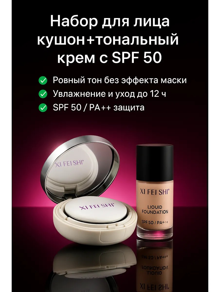 Кушон XI FEI SHI CC Cream – это универсальное средство для идеального тона кожи. Лёгкая текстура обеспечивает равномерное покрытие без эффекта маски, ухаживает за кожей в течение дня и дарит свежесть до 12 часов. В составе — увлажняющие и ухаживающие компоненты, которые делают макияж не только красивым, но и полезным для кожи.