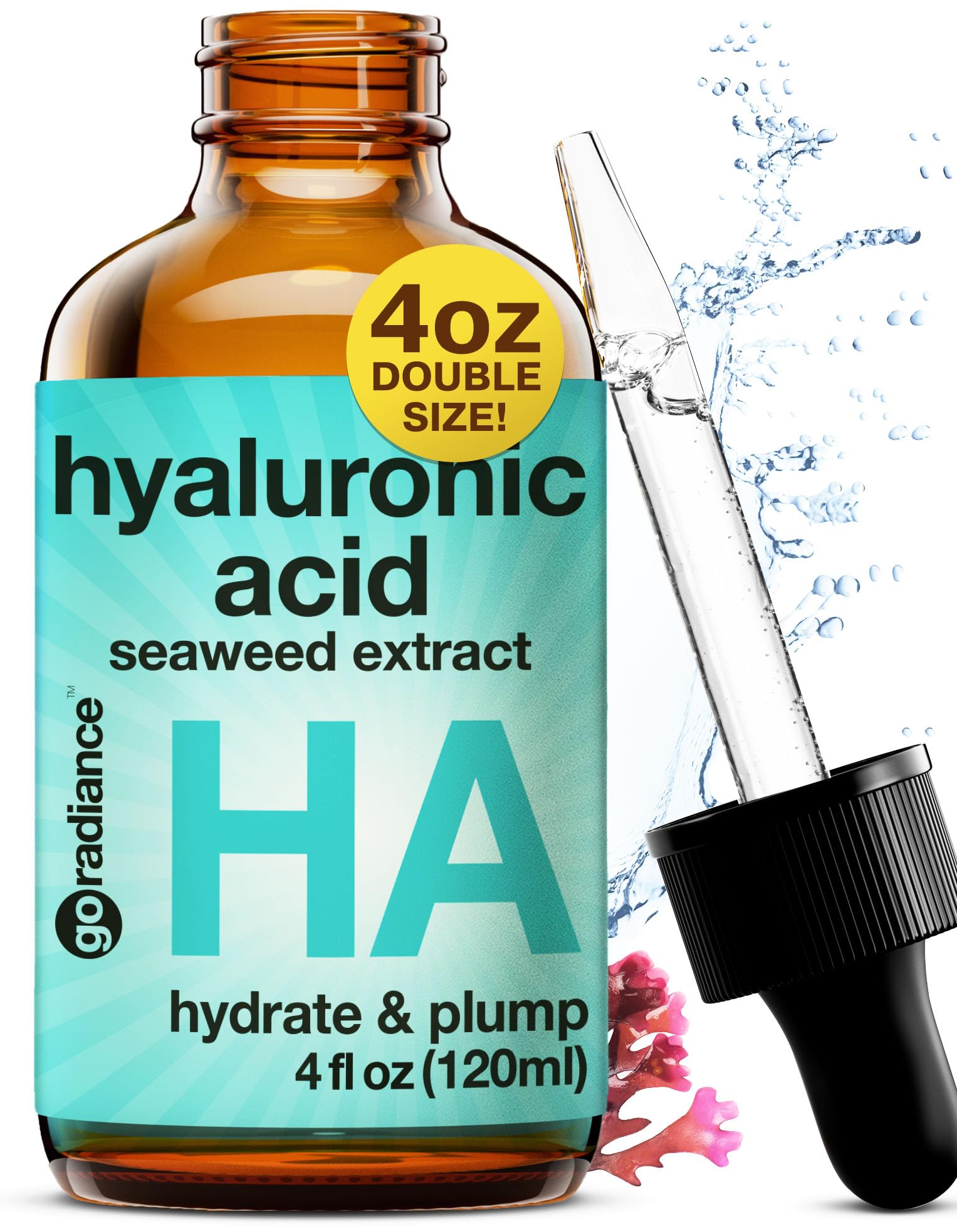 Double Size (4OZ) Hyaluronic Acid Serum for Face 3.5%, Hyaluronic Acid Moisturizer, Hydrating Serum for Face, Moisturizing Hyaluronic Acid Serum with Seaweed and Chamomile, Glow Face Serum for Women Hyaluronic Acid Serum 4