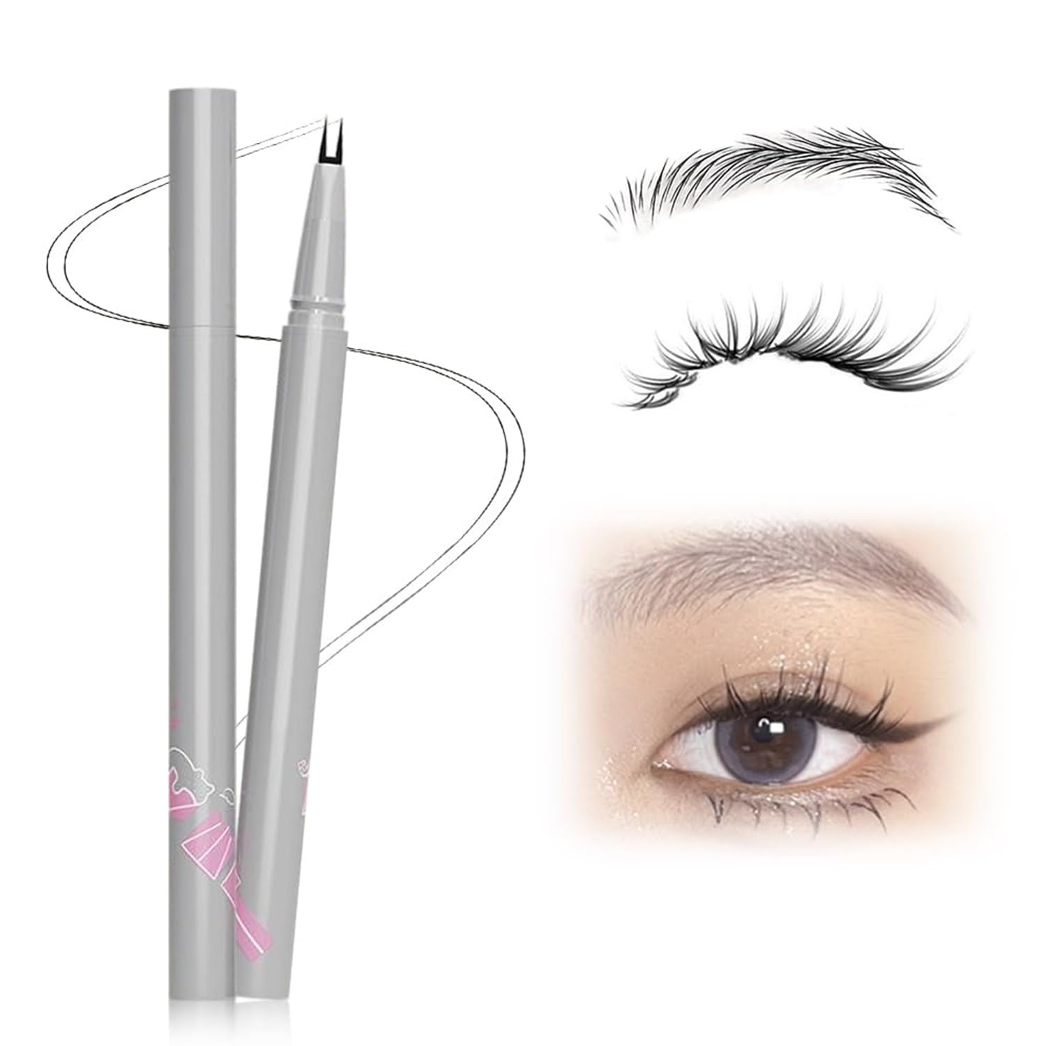 Double Tip Lower Eyelash Pencil 3D Waterproof 2 Tip Eyelash Pen Eye Liner Liquid Eyeliner Dual Pronged Bottom Eyelashes Pen Waterproof Liquid Eyeliner for Natural Eye Makeup (Fog Black)