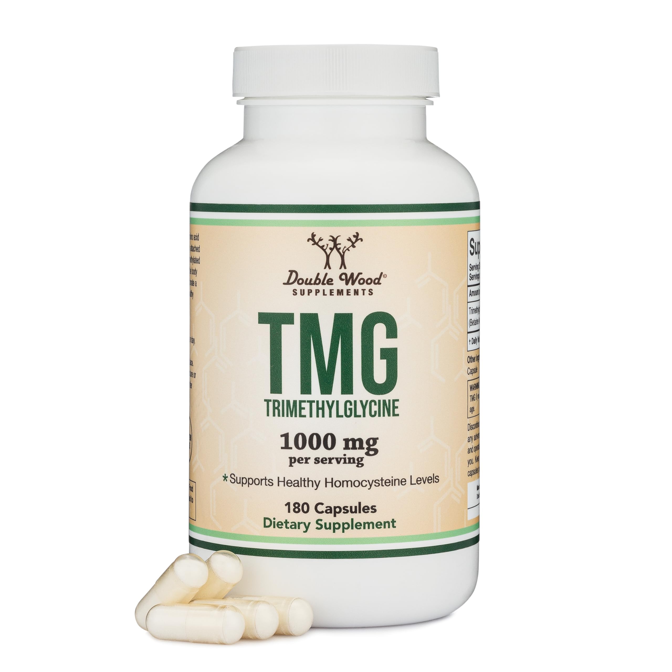 WE BOTTLE WELLNESS: At Double Wood, we provide pure, potent supplements that deliver exceptional value, all backed by careful sourcing and rigorous third-party testing. COMBINE WITH OUR METHYLATED MULTIVITAMIN FOR CARDIOVASCULAR HEALTH: TMG is the perfect ingredient to combine with our Methylated Multivitamin to support cardiovascular health. GENUINE TMG WITH FISHY SMELL: Real TMG inherently has a fishy odor. Do not be alarmed by the smell as it is evidence the product you received is genuine TMG. TMG SUPPLEMENTS TO LOWER HOMOCYSTEINE: Multiple studies show that supplementing with TMG (Trimethylglycine) in doses of 3,000mg may reduce homocysteine levels by up to 40%. SUPPORTS ATHLETIC PERFORMANCE: Research indicates that TMG capsules may help oxygenate muscles to support training while lifting weights and exercising.