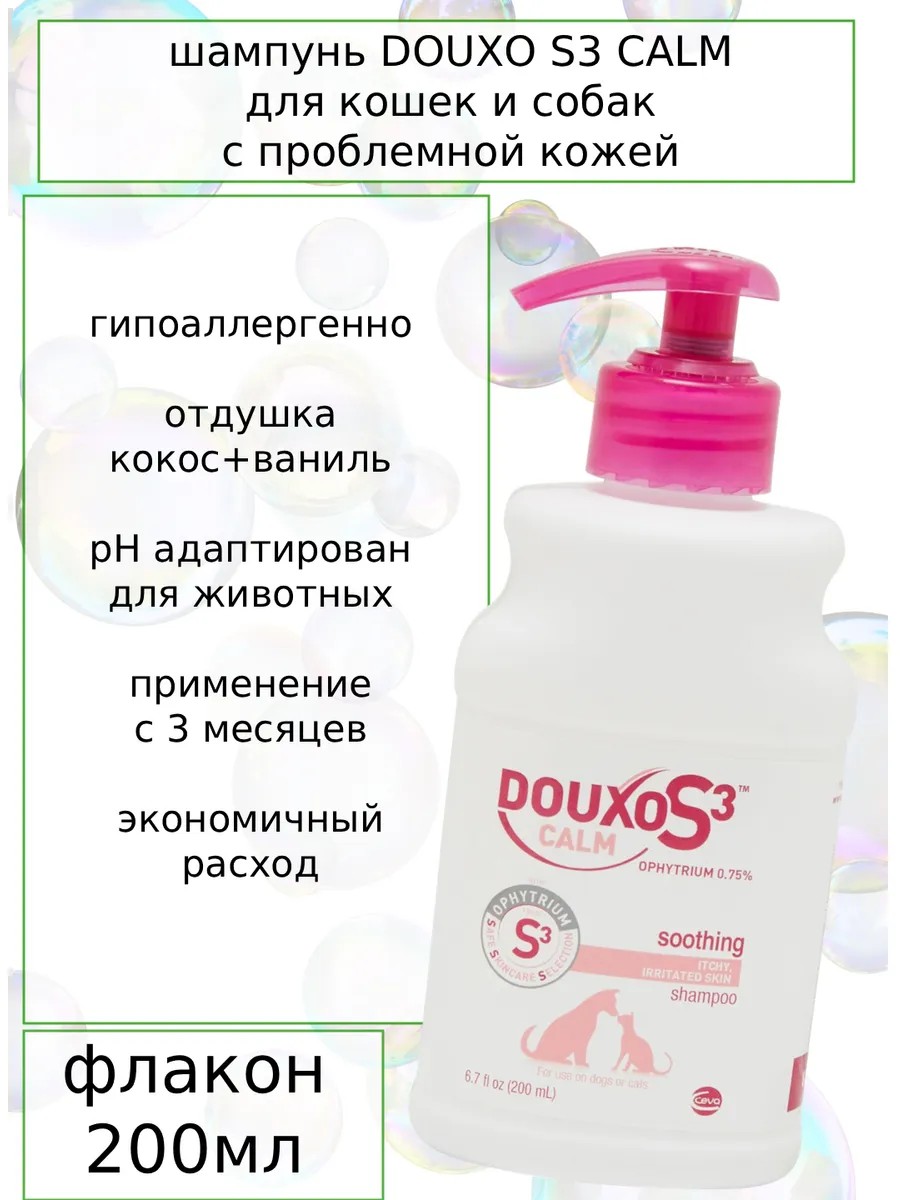Douxo S3 Шампунь для чувствительных собак кошек при зуде атопии 200мл
