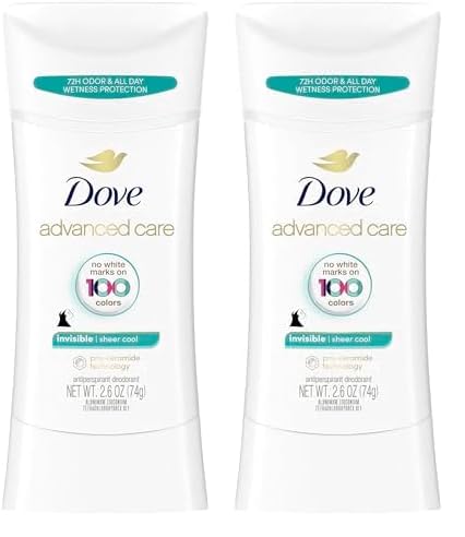 Dove Advanced Care Antiperspirant Deodorant Stick Sheer Cool Anti-stain antiperspirant deodorant for soft underarms All-day sweat and 72-hour odor protection 2.6 oz (Pack of 2)