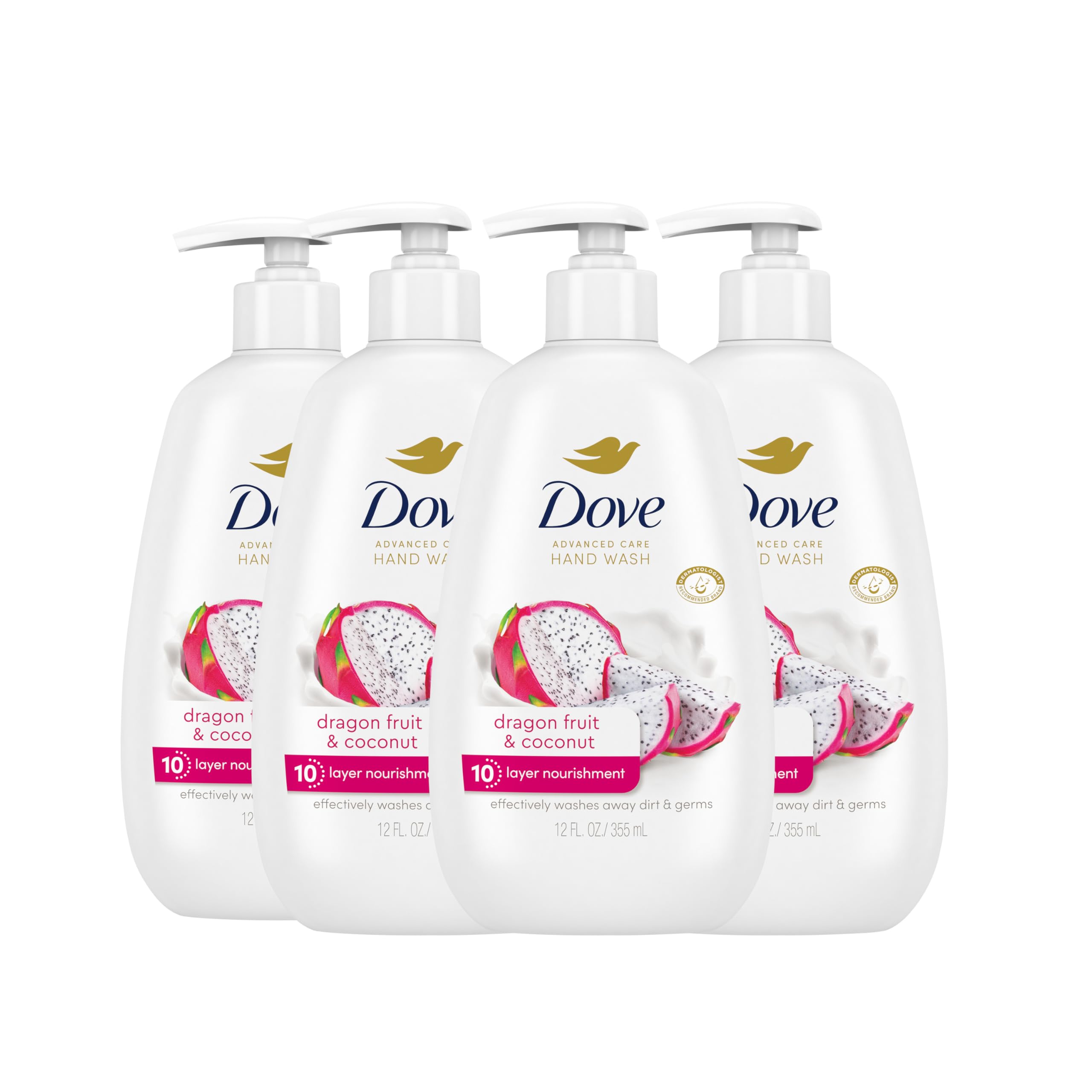 Our Dove Advanced Care Dragon Fruit Coconut scented hand wash with moisture boost 5x complex is a luxurious blend that marries deep hydration with powerful cleansing. This hand soap is meticulously crafted to nourish the skin 10 layers deep and remove germs in mere seconds. Advanced Care delivers care for your hands beyond cleaning. It restores moisture for hours and invigorates your senses with an intoxicating scent. Dragon fruit brings a vibrant, exotic fragrance that refreshes, while coconut adds a layer of rich, creamy comfort that leaves your hands feeling incredibly soft. Together, they create a sensory experience that lingers long after you've washed your hands, enveloping you in a gentle, tropical embrace. Indulge in the new Dragon Fruit and Coconut scent—an exquisite blend that captures the essence of tropical luxury and brings it right to your hands. This soap is more than just a cleanser it's a daily ritual of self-care. As you dispense a generous pump into your hands, the formula transforms into a rich, velvety lather. Gently massage it over your hands, ensuring you cover every inch, from your knuckles to your cuticles. Take at least 20 seconds to allow the nourishing ingredients to deeply penetrate your skin, leaving it thoroughly cleansed and beautifully hydrated. Gentle enough for all skin types, this hand soap is as mild as water, making it perfect for frequent use throughout the day. Moreover, it's vegan and PETA Approved, meaning no animal testing is involved in its production. Free from sulfates and parabens, it's designed to be kind to your skin. Packaged in 100 recycled plastic bottles, this hand soap is not only a treat for your skin but also a conscious choice for the planet, embodying Dove's dedication to ethical and sustainable practices.THOUGHTFULLY MADE: Our vegan, PETA-approved hand wash is sulfate-free, paraben-free, and never tested on animals We also recycle and compost to recover raw materials where possible. HOW TO USE: Add a generous pump of this hand wash to wet hands Rub your hands together to work the product into a lather before rinsing with water Always wash for at least 20 seconds. DERMATOLOGIST-RECOMMENDED BRAND: Our Advanced Care Deep Moisture formula uses mild cleansers that are incredibly kind to your skin. TROPICAL SCENT: Our dragon fruit coconut scented hand wash envelopes you with its exotic fruity notes and creamy, soothing undertones, leaving your hands soft, smooth, and fragrantly refreshed. CLEAN NOURISHED SKIN: This gentle cleanser removes dirt and germs while moisturizing for hours with our formula that penetrates 10 layers deep, leaving your hands soft, smooth, and nourished. MOISTURE BOOST 5X COMPLEX: Infused with a blend of moisturizers skin-natural nutrients, our Advanced Care hand wash moisturizes hands, knuckles, cuticles palms while washing away dirt and germs.