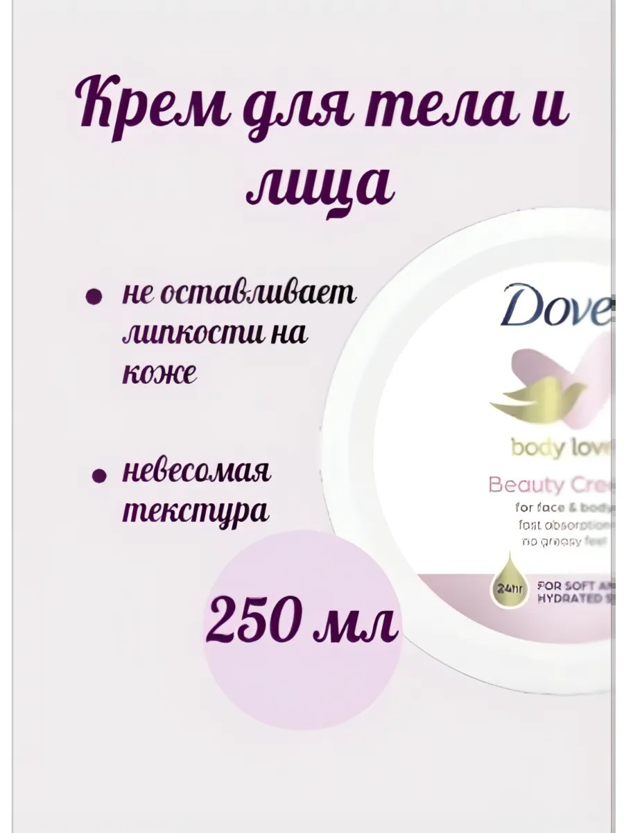 Этот увлажняющий продукт заботливо ухаживает за вашей кожей, делая ее мягкой и шелковистой. Крем предназначен для всего тела обеспечивая необходимое питание и увлажнение. Если вам нужен нежный и питательный уход за сухой или жирной кожей, то этот крем - отличный выбор. Уникальная формула крема DOVE содержит все необходимые компоненты для поддержания здоровья вашей кожи.