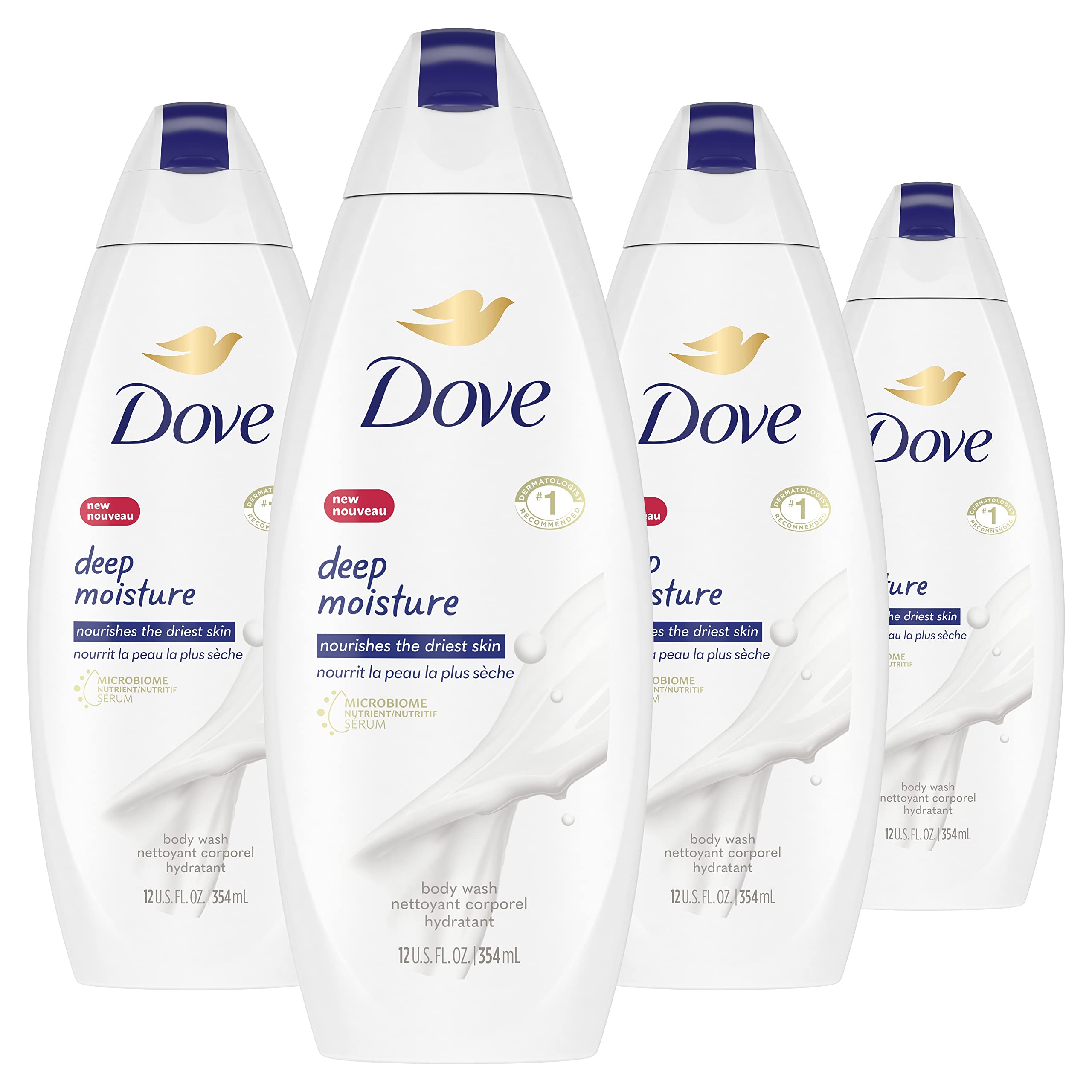 Dove Body Wash with skin natural nourishers Deep Moisture body cleanser for instantly soft skin and lasting nourishment 354 ml 4 Count Deep Moisture 354 count (Pack of 4)