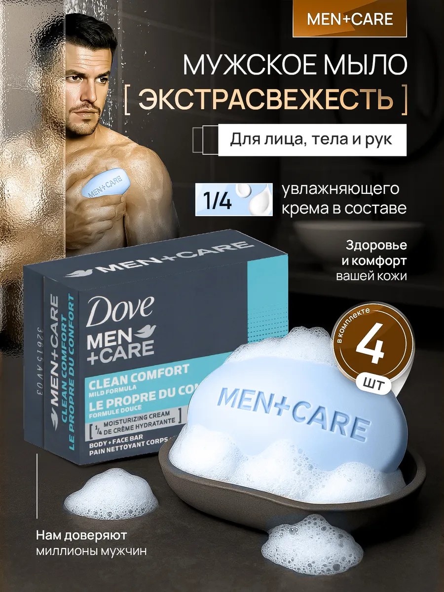 Мыло мужское dave men care обеспечивает уход за кожей на высшем уровне. Созданное специально для мужчин, это крем- мыло содержит питательные компоненты, которые увлажняют кожу и снимают раздражения, вызванные бритьем. Сочетание деликатных очищающих ингредиентов делает это мыло мужское твердое идеальным для использования на лице, руках и теле. Новая формула dоve men придает коже свежий аромат и ощущение мягкости. Наслаждайтесь богатой пеной и безупречной чистотой каждый раз, когда вы используете это мыло для душа мужское. Выбирая набор для бритья мужской подарочный dove, вы получаете 4 штуки мыла. Не упустите возможность заботиться о себе с помощью этого уникального мыло для бритья Dove.