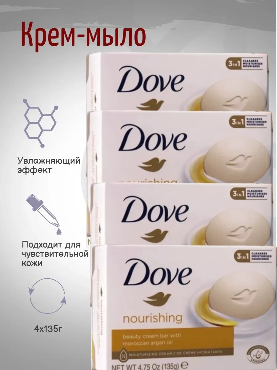 Dove Крем-мыло кусковое с аргановым маслом ,135 г 4шт