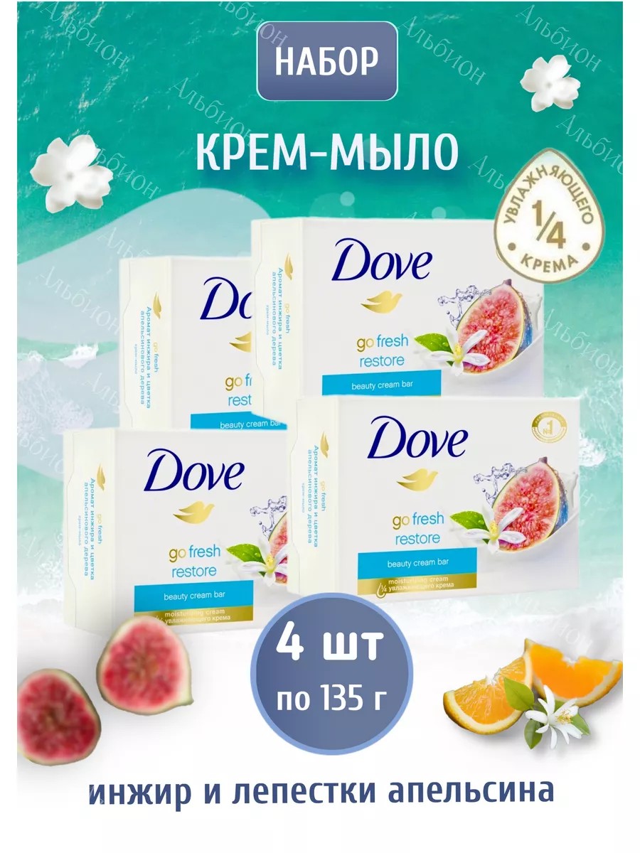 Крем-мыло Инжир и лепестки апельсина набор из 4 шт– это мыло Дав с одним ароматам в одном: Инжир и лепестки апельсина, каждое из которых весит 135 грамм. Дав бережно очищает и увлажняет кожу, придавая ей нежность и гладкость. Кремовая текстура мыла Dove позволяет создать богатую пену, которая деликатно очищает кожу, не пересушивая ее. Твёрдое мыло Dove по 135гр. нежно питает и увлажняет кожу. Косметика Дав заботится о вашей красоте и здоровье. Попробуйте набор из 4 шт ароматного крем-мыла и ощутите его нежное воздействие на вашу кожу. Мыло подходит для всех типов кожи. ННабор отлично подойдет маме, бабушке, коллеге, любимой или сестре в качестве подарка на день рождения, Новый Год, 8 марта и 14 февраля. Твердое мыло Dave состоит частично из увлажняющего крема, благодаря которому ваша кожа остается нежной, гладкой и ухоженной. Благодаря набору мыла, его эффекта хватит надолго, а ваша кожа будет очищена и красива каждый день. Твердое туалетное мыло - мягкое очищающее средство, которое предотвращает повреждение, раздражение и сухость вашей кожи. Оно сочетает в себе питательные свойства инжира и лепестков апельсина.