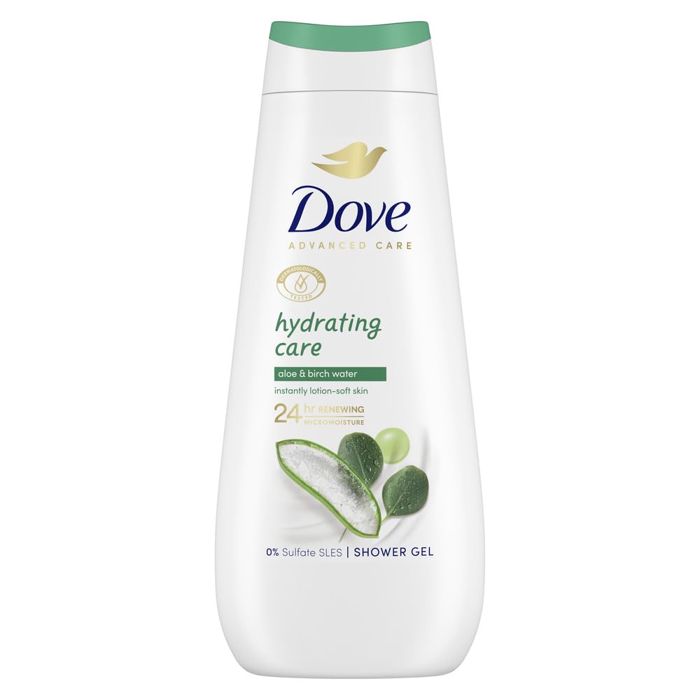 Want to start every day with a shower gel that's a pleasure to use? Look no further! Dove Advanced Care Moisturizing Shower Gel adds a burst of energy to every shower. This light, fizzy lather is infused with aloe and a birch water fragrance, making it an invigorating and refreshing shower gel that moisturizes skin so you can start your day feeling energized. Unlike ordinary shower gels, Dove Advanced Care is created with patented micro-hydration technology to replenish your skin's natural moisture for 24 hours. This Dove technology deposits millions of tiny but powerful moisturizing micro-droplets that, instead of washing away, are absorbed deep down and work continuously with your skin's natural renewal process to strengthen the skin barrier and help retain and boost moisture, even after you shower. This moisturizing body wash with aloe and birch water envelops you in a clean, fresh scent, leaving your skin soothed and replenishing moisture. Furthermore, this formula uses a blend of gentle, naturally derived cleansers and natural skin nutrients to gently cleanse and nourish your microbiome. It is also SLES-free, contains 98 biodegradable ingredients, is packaged in 100 recycled plastic bottles , and is PETA-approved as vegan. 98 of ingredients are broken down into carbon dioxide, water, and minerals (OECD test methods 301, 302, and or 310). Bottle excluding cap and labels. SAFETY WARNING For external use only.Nourishing and gentle: With a rich lather, this formula contains naturally derived cleansers, natural skin nutrients, and is free of SLES sulfates, making it gentle on your skin and its microbiome. Shower your skin and delight your senses: Created with natural skin nutrients, this formula for dry skin actively replenishes your skin's natural moisture, leaving it soft and hydrated in just one shower. Feel your skin silky smooth all day long: This nourishing formula contains millions of moisturizing micro-droplets that reach and hydrate every millimeter of your skin for lasting nourishment throughout the day. 24-hour care, starting with your shower: Dove Advanced Care Deep Moisture Body Wash gently cleanses and deeply hydrates skin, leaving it silky soft and nourished for 24 hours.Dove Advanced Care Gel douche hydratant Aloe et eau de bouleau 12 x 400 mlDESCRIPTION DU PRODUIT DESCRIPTION DU PRODUIT Voulez-vous commencer chaque jour avec un gel douche qui soit un plaisir à utiliser ? Ne cherchez plus ! Le gel douche Dove Advanced Care Soin Hydratant ajoute une explosion d'énergie à chaque douche. Cette mousse légère et pétillante est infusée avec de l'aloès et un parfum d'eau de bouleau, ce qui en fait un gel douche stimulant et très rafraîchissant qui hydrate la peau pour que vous puissiez commencer votre journée avec énergie. Contrairement aux gels douche ordinaires, Dove Advanced Care est créé avec la technologie brevetée de micro-hydratation pour renouveler l'hydratation naturelle de votre peau pendant 24 heures. Une technologie Dove qui dépose des millions de minuscules mais puissantes micro-gouttes hydratantes qui, au lieu de se détacher, sont absorbées profondément et travaillent en permanence avec le processus naturel de renouvellement de votre peau pour renforcer la barrière cutanée et aider à retenir et augmenter l'humidité, même après la douche. Ce gel douche hydratant à l'aloe et à l'eau de bouleau vous enveloppe d'un parfum propre et frais, laissant votre peau apaisée et reconstituant l'hydratation de votre peau déshydratée. En outre, cette formule utilise un mélange de nettoyants doux d'origine naturelle et de nutriments naturels de la peau pour la nettoyer en douceur et nourrir votre microbiome. De plus, il est exempt de sulfates SLES, contient 98 d'ingrédients biodégradables, est emballé dans des bouteilles en plastique recyclé à 100 et est approuvé par PETA comme végétalien. 98 des ingrédients sont décomposés en dioxyde de carbone, eau et minéraux (méthodes d'essai OCDE 301, 302 et ou 310). Bouteille à l'exclusion du bouchon et des étiquettes. AVERTISSEMENT DE SÉCURITÉ Pour usage externe uniquement.Nuritif et doux : avec une mousse abondante, cette formule contient des nettoyants d'origine naturelle, des nutriments naturels de la peau et ne contient pas de sulfates SLES, ce qui la rend douce pour votre peau et son microbiome. Douche votre peau et ravissez vos sens : créée avec des nutriments naturels de la peau, cette formule pour peau sèche régénère activement l'humidité naturelle de la peau, la laissant douce et hydratée en une seule douche. Sentez votre peau douce comme de la soie tout au long de la journée : cette formule nourrissante contient des millions de micro-gouttes hydratantes qui atteignent et hydratent chaque millimètre de votre peau pour une nutrition durable tout au long de la journée. 24 heures de soin, dès votre douche : le gel douche Dove Advanced Care Hydratation profonde nettoie en douceur et hydrate en profondeur la peau, la laissant douce et nourrie comme de la soie pendant 24 heures.