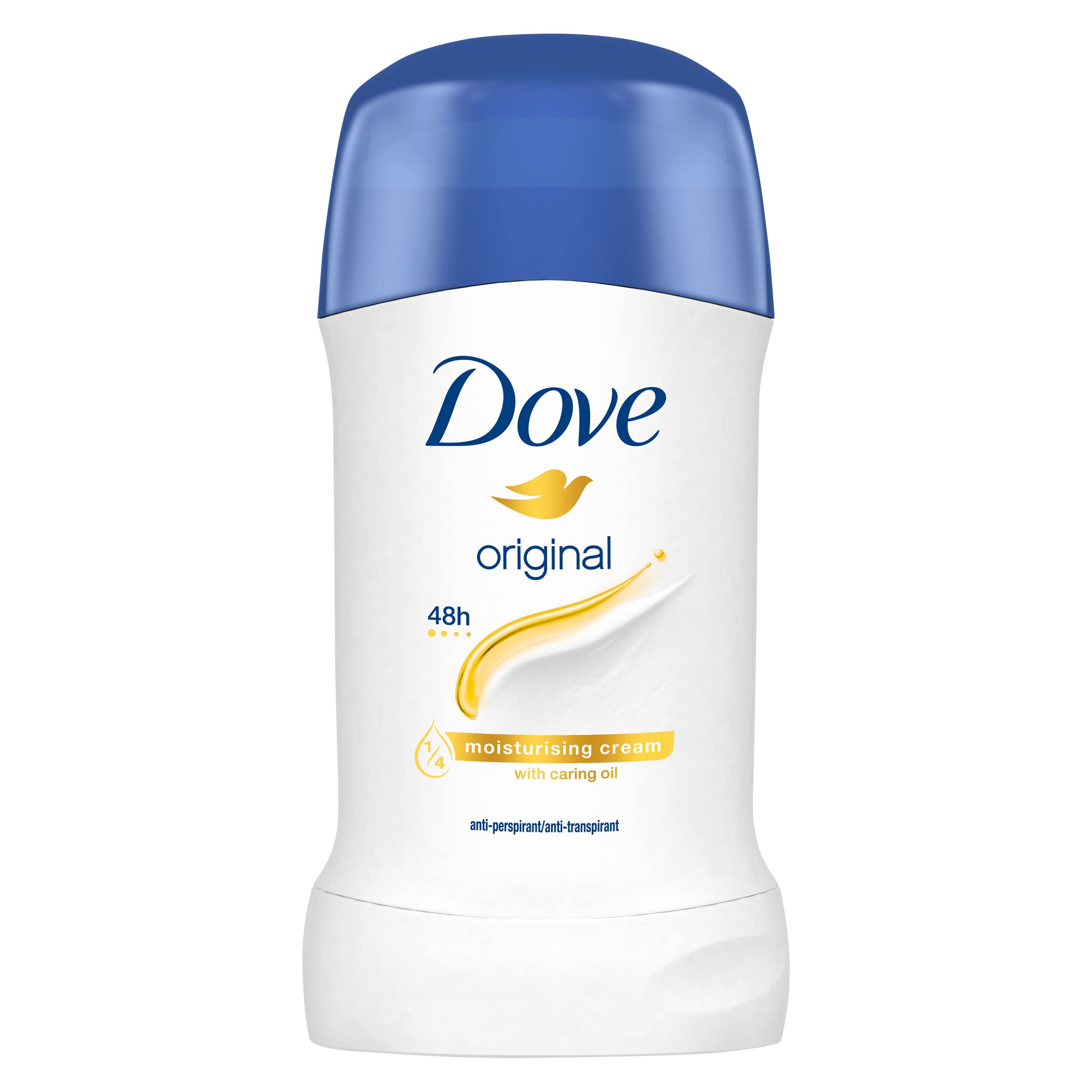 Women's Antiperspirant Stick Deodorant. Do not apply to irritated or damaged skin. We regularly improve our formulas please always check the information on the product label. DIRECTIONS Apply the deodorant to clean, dry skin. Let it dry for one minute. INGREDIENTS Ingredients: Aluminum Zirconium Tetrachlorohydrex GLY, Stearyl Alcohol, C12-15 Alkyl Benzoate, Cyclopentasiloxane, Isopropyl Palmitate, PPG-14 Butyl Ether, Hydrogenated Castor Oil, PEG-8, Parfum (Fragrance), Dimethicone, Silica, Polyethylene, Helianthus Annuus (Sunflower) Seed Oil, Steareth-100, BHT, Alpha-Isomethyl Ionone, Benzyl Alcohol, Benzyl Benzoate, Benzyl Salicylate, Citronellol, Geraniol, Hexyl Cinnamal, Hydroxycitronellal, Linalool. INSTRUCTIONS FOR USE Apply to clean, dry underarm skin. DISCLAIMER Image for illustrative purposes only. The information above is provided for informational purposes only. It is not necessarily exhaustive and should not replace the information on the product packaging, which is the only authoritative source. Please refer to the packaging, especially if you have a food intolerance. See moreThe 40ml stick.Dove Original Deodorant Stick 40MLDESCRIPTION DU PRODUIT DESCRIPTION DU PRODUIT Déodorant Femme Stick Anti Transpir Ne pas appliquer sur la peau irritée ou endommagée. Nous améliorons nos formules régulièrement, merci de toujours vérifier les informations présentes sur l'étiquette du produit. INDICATIONS Appliquer le déodorant sur une peau sèche et propre. Laisser sécher une minute. INGRÉDIENTS Ingredients: Aluminum Zirconium Tetrachlorohydrex GLY, Stearyl Alcohol, C12-15 Alkyl Benzoate, Cyclopentasiloxane, Isopropyl Palmitate, PPG-14 Butyl Ether, Hydrogenated Castor Oil, PEG-8, Parfum, Dimethicone, Silica, Polyethylene, Helianthus Annuus Seed Oil, Steareth-100, BHT, Alpha-Isomethyl Ionone, Benzyl Alcohol, Benzyl Benzoate, Benzyl Salicylate, Citronellol, Geraniol, Hexyl Cinnamal, Hydroxycitronellal, Linalool. MODE D'EMPLOI Appliquer sur une peau propre et sèche des aisselles CLAUSE DE NON-GARANTIE Photographie non contractuelle. Les indications ci-dessus sont données à titre d'information. Elles ne sont pas forcément exhaustives et ne sauraient se substituer aux informations figurant sur l'emballage du produit qui font seules foi, et auxquelles vous êtes invités à vous reporter, notamment en cas d'intolérance alimentaire. Voir plusLe stick de 40ml.