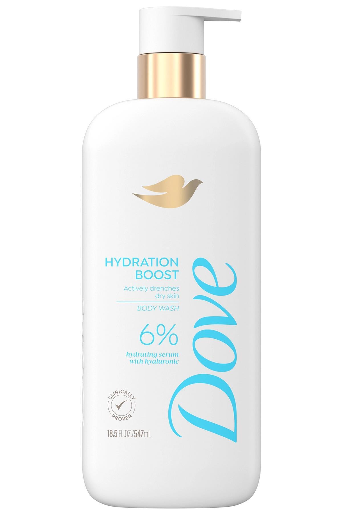 Actively hydrate dry skin with a hydrating body wash infused with 6 hydrating serum containing hyaluronic acid.