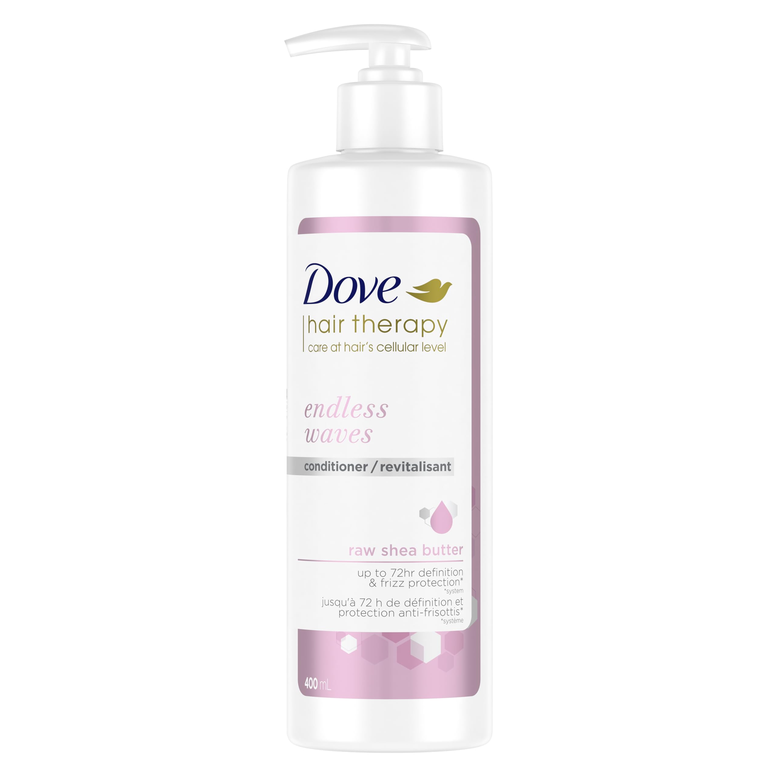 Love your waves and enhance the beauty of naturally wavy hair with deep nourishment that helps you achieve that smooth, defined look. Dove Hair Therapy Endless Waves Moisturizing Conditioner is made with raw shea butter and is specially formulated for wavy hair. Dove Hair Therapy Endless Waves system smooths hair cuticles for nourished hair and up to 72 hours of definition, even in high humidity. How to Use Dove Endless Waves system: After shampooing with Dove Endless Waves Shampoo, apply and massage Dove Endless Waves Moisturizing Conditioner, leave on for at least 1 minute and rinse. Remember: you're beautiful ? Dove Endless Waves system for wavy hair is sulfate-free, paraben-free, and dye-free. This hair conditioner is Certified Cruelty-Free by PETA and is made with 70 recycled plastic bottles, so you can feel good about using Dove. About Dove Hair Therapy Collection: Your hair is unique and deserves custom, tailored care. Dove Hair Therapy Collection delivers specialized care for a range of textures, types, lengths, and colours, so you can love nourish the hair that makes you, you. This Collection is free from sulfates and parabens. nourishes at the level of the hair cortexSPECIALIZED CARE: Dove Hair Therapy Collection delivers custom, tailored hair care for a range of hair textures, types, lengths, colours, so you can love and nourish the hair that makes you, you. THOUGHTFULLY MADE: This Endless Waves conditioner is Certified Cruelty-Free by PETA, and is made with 70 recycled plastic bottles, so you can feel good about using Dove. HOW TO USE: After shampooing, apply and massage Dove Endless Waves Moisturizing Conditioner, leave on for at least 1 minute and rinse. NOURISHING INGREDIENTS: Dove Endless Waves is made with Raw Shea Butter and a gentle formula. This moisturizing conditioner is paraben-free. MOISTURIZING CONDITIONER: This hydrating conditioner moisturizes, nourishes and helps deliver up to 72 hours of definition for wavy hair with expert care that goes to hair's cellular level . HYDRATED WAVES: Love your waves and enhance the beauty of naturally wavy hair with deep nourishment. Dove Hair Therapy Endless Waves system smooths hair cuticles for nourished hair and a smooth, defined look.