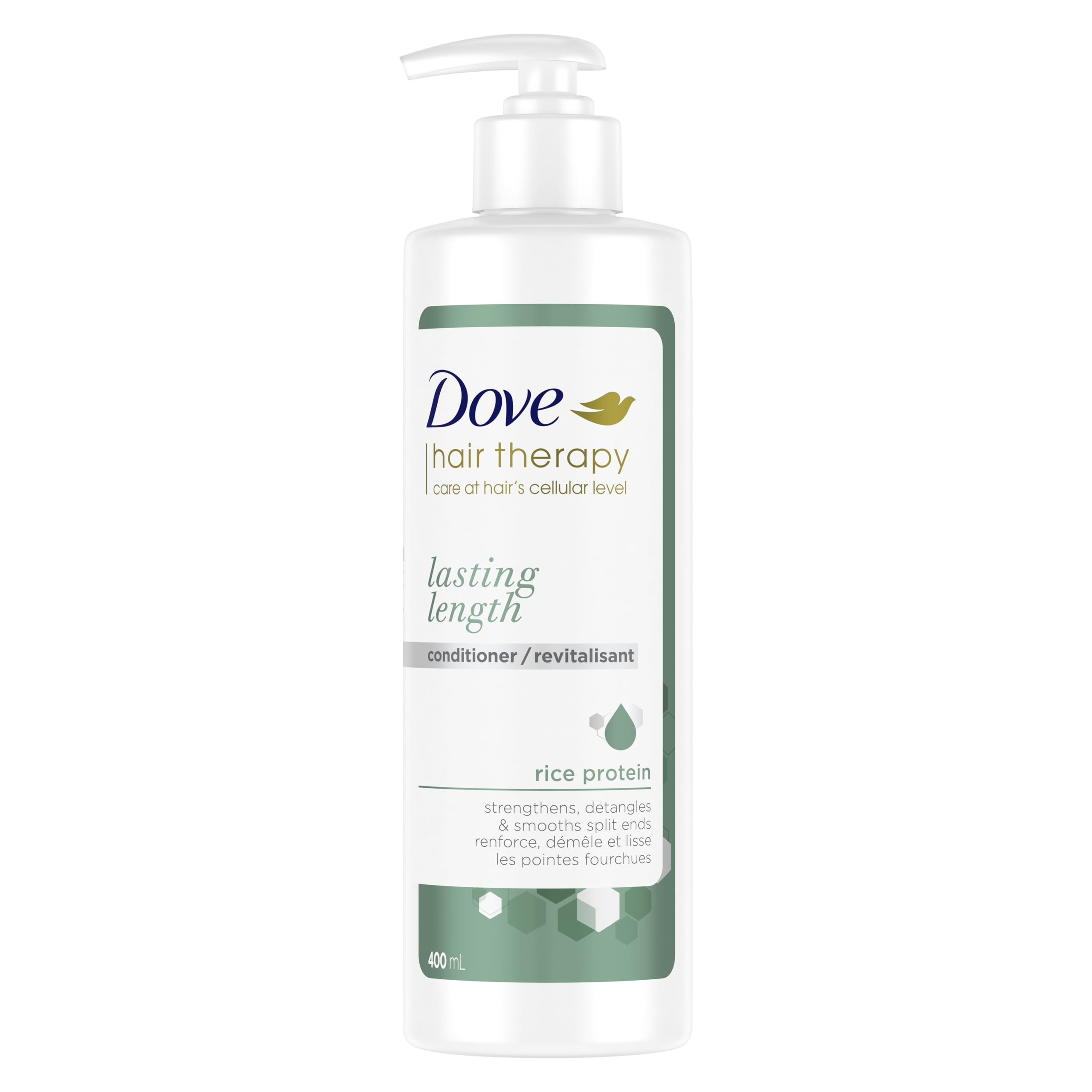 Love your length and protect your long hair inch by inch. Dove Hair Therapy Lasting Length Conditioner for damaged hair is made with rice protein and is specially formulated for long hair. Dove Hair Therapy Lasting Length Conditioner for damaged hair is the go-to for your long hair goals. Its micro-conditioning actives coat the hair fibres without weighing them down to ease detangling, smooth split ends strengthen hair to the very tips. How to Use Dove Hair Therapy Lasting Length system: After shampooing, apply and massage, leave on for 1 minute and rinse. Best when used with Dove Hair Therapy Lasting Length shampoo. Remember: you're beautiful ? Dove Hair Therapy Lasting Length conditioner for long hair is sulfate-free, paraben-free, and dye-free. This conditioner is Certified Cruelty-Free by PETA and is made with 70 recycled plastic bottles, so you can feel good about using Dove. About Dove Hair Therapy Collection: Your hair is unique and deserves custom, tailored care. Dove Hair Therapy Collection delivers specialized care for a range of textures, types, lengths, and colours, so you can love nourish the hair that makes you, you. This Collection is free from sulfates and parabens. nourishes at the level of the hair cortexSPECIALIZED CARE: Dove Hair Therapy Collection delivers custom, tailored care for a range of hair textures, lengths, colours, so you can love nourish the hair that makes you, you. THOUGHTFULLY MADE: This Dove Hair Therapy Lasting Length Conditioner is Certified Cruelty-Free by PETA, and made with 70 recycled plastic bottles, so you can feel good about using Dove. HOW TO USE: After shampooing, apply this conditioner and massage, leave on for 1 minute and rinse. Best when used with Dove Hair Therapy Lasting Length Shampoo. NOURISHING INGREDIENTS: Dove Hair Therapy Lasting Length Conditioner for damaged hair is made with rice protein and a gentle paraben-free formula. STRENGTHENING CONDITIONER: This conditioner is the go-to for easy detangling, smoothing split ends strengthening long hair to the very tips with expert care that goes to hair's cellular level . LONG STRONG: Love your length protect your hair. Dove Hair Therapy Lasting Length Conditioner has micro-conditioning actives that coat hair fibres without weighing them down to ease detangling.