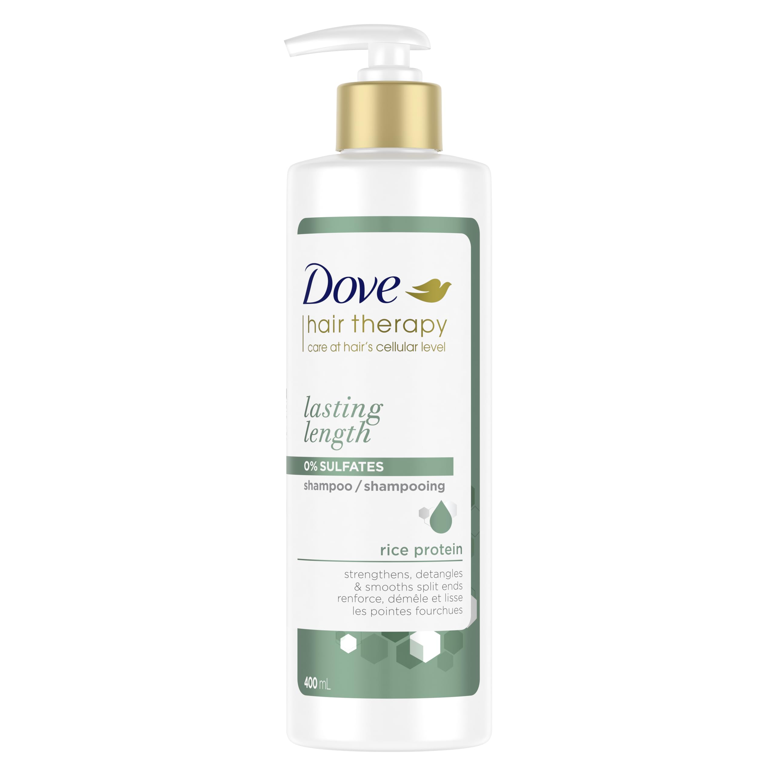 Love your length and protect your long hair inch by inch. Dove Hair Therapy Lasting Length Sulfate-Free Shampoo is a strengthening shampoo made with rice protein, and it is specially formulated for long hair. Dove Hair Therapy Lasting Length system is the go-to for your long hair goals. Its micro-conditioning actives coat the hair fibres without weighing them down to ease detangling, smooth split ends strengthen hair to the very tips. How to Use Dove Hair Therapy Lasting Length system: Apply this hair shampoo to wet hair, lather and rinse. For best results, follow with Dove Hair Therapy Lasting Length conditioner. Remember: you're beautiful ? Dove Hair Therapy Lasting Length system for long hair is sulfate-free, paraben-free and dye-free. This shampoo for damaged hair is Certified Cruelty-Free by PETA, and is made with 70 recycled plastic bottles, so you can feel good about using Dove. About Dove Hair Therapy Collection: Your hair is unique and deserves custom, tailored care. Dove Love Your Hair Collection delivers specialized care for a range of textures, types, lengths, and colors, so you can love nourish the hair that makes you, you. This collection is free from sulfates and parabens. nourishes at the level of the hair cortexSPECIALIZED HAIR CARE: Dove Hair Therapy Collection delivers specialized, tailored care for a range of hair textures, types, lengths colours, so you can love nourish the hair that makes you, you. THOUGHTFULLY MADE: This Hair Therapy Lasting Length hair care system is Certified Cruelty-Free by PETA and is made with 70 recycled plastic bottles, so you can feel good about using Dove. HOW TO USE: Apply this hair shampoo to wet hair, lather and rinse. For best results, follow with Dove Hair Therapy Lasting Length Conditioner. NOURISHING INGREDIENTS: Dove Hair Therapy Lasting Length hair care system is made with Rice Protein and gentle formulas. It is sulfate-free, paraben-free, and dye-free. SULFATE-FREE SHAMPOO: This strengthening shampoo for damaged hair is the go-to for gently cleansing and strengthening long hair to the very tips with expert care that goes to hair's cellular level . LONG STRONG: Dove Hair Therapy Lasting Length system has micro-conditioning actives, that coat the hair fibres without weighing them down to ease detangling, smooth split ends strengthen hair.