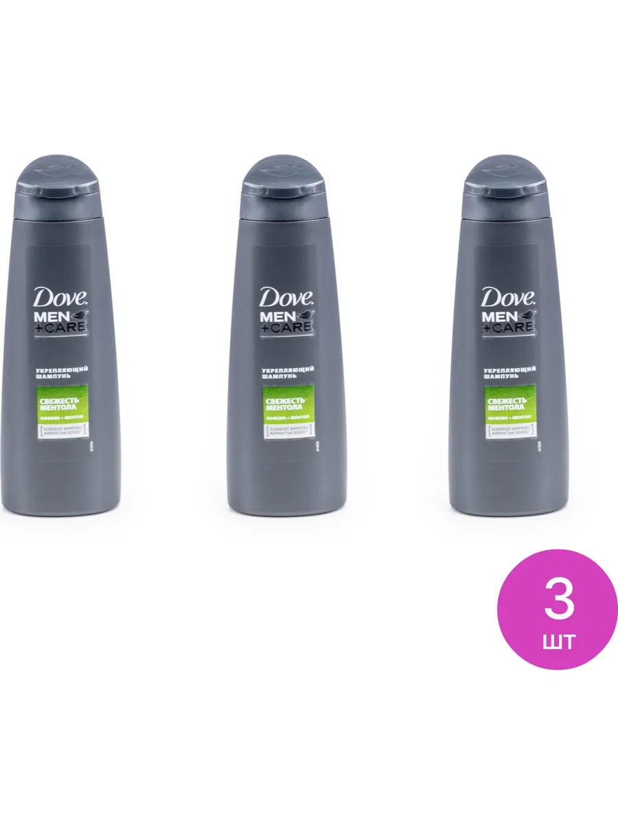 Dove / Dove Men+Care Strengthening Shampoo with Caffeine and Menthol for All Hair Types, 250ml. Set of 3. Price per set. Dove Men+Care Strengthening Shampoo is specially formulated for oily hair to give it a healthy look, natural shine, and freshness. Dove Men+Care Shampoo contains caffeine and menthol for a long-lasting scalp freshness. It strengthens hair, energizes it, and combats excess oiliness. Add this shampoo to your personal care arsenal, and you'll enjoy a long-lasting feeling of freshness and cleanliness. Dove Men+Care hair wash is suitable for daily use! Shampoo for oily hair / dove shampoo for men / shampoo for hair growth Ingredients: Aqua, Sodium Laureth Sulfate, Cocamidopropyl Betaine, Dimethiconol, Sodium Chloride, Zinc Pyrithione, Dimethicone, Parfum, Sodium Sulfate, Carbomer, Sodium Hydroxide, DMDM Hydantoin, Glyceryl Acid, Guar Hydroxypropyltrimonium Orphanate, PEW, Sodium Benzoate, Sodium Wynaphthalenesulfonate, PEW, Xanthan Gum, Methylchloroisothiazolinone, Methyphthalosothiazolinone, Caffeine, Butylphenyl Methylpropional, Limonene.