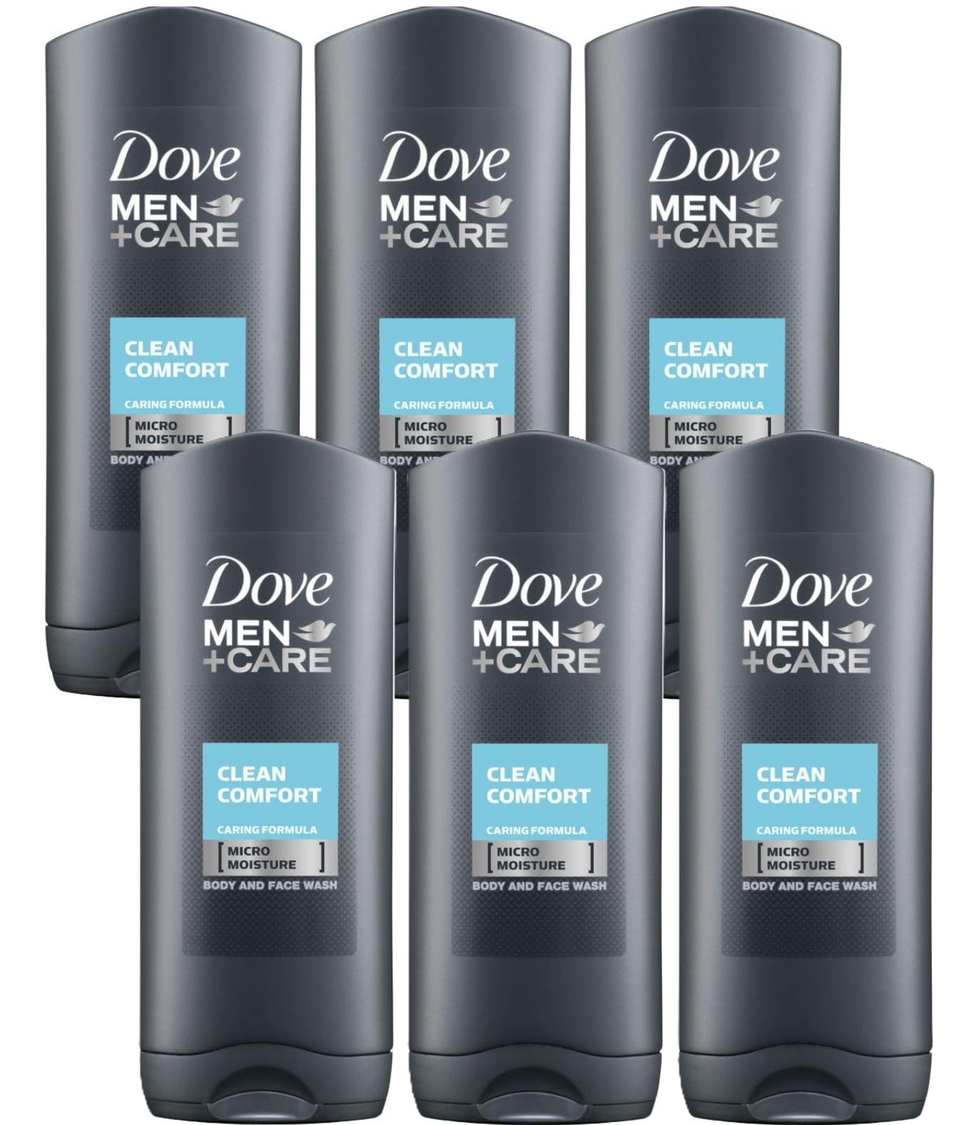 Dove Men Care Body and Face Wash, Hydrating Clean Comfort Shower Gel, 250 ml (8.5 fl oz), Value Bundle - Pack of 6
