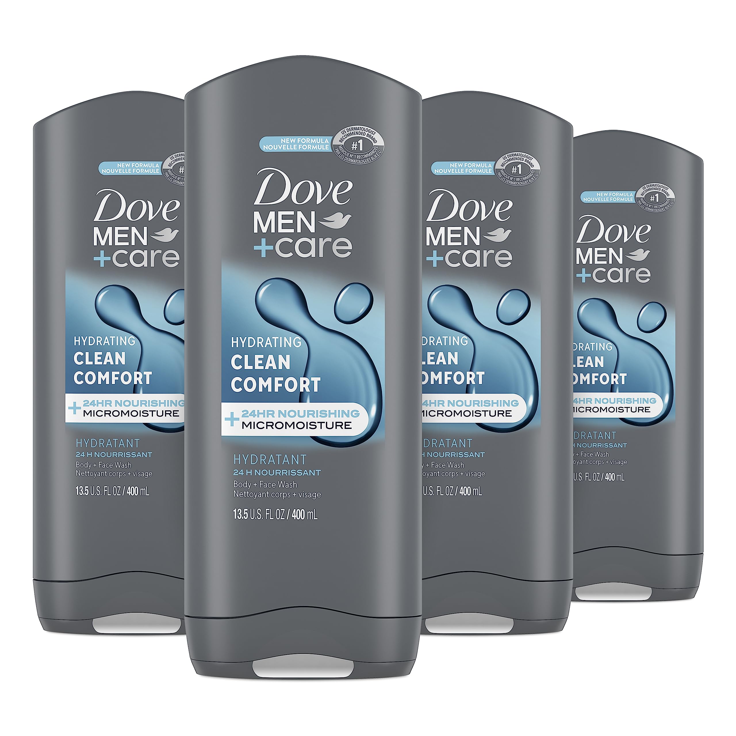 Get smooth, healthy-feeling skin all day with Dove Men Care Hydrating Clean Comfort Body and Face Wash. With the clean and crisp scent of fresh lemon and masculine cedarwood, this body wash will soothe your senses and nourish your skin. Coming in a convenient pack of 4, the men's body wash has plant-based ingredients and nutrients for smoother, healthier-feeling skin all day. Our body wash for men is paraben-free, is made with plant-based moisturizers and contains our 24-hour nourishing Micromoisture to transform even the driest skin in just one shower. Squeeze a generous amount of Dove Men Care body wash for men into your palms. Massage the hydrating body wash onto your skin, taking a moment to enjoy the rich lather before rinsing off. This body wash is Certified Cruelty-Free by PETA and is packaged in 100 recycled plastic bottles, so you can feel good about switching to Dove Men Care. We are also committed to a landmark new initiative as part of our 2025 commitment to reduce plastic waste. This includes reducing over 20,500 metric tons of virgin plastic annually by making the iconic beauty bar packaging plastic-free globally, launching new 100 recycled plastic bottles, and trialling a new refillable deodorant format that reduces plastic waste over time. As one of the largest personal care brands in the world, we are revealing an agenda-setting commitment to tackle the global personal care industry's plastic waste issue.Dove Men Care Hydrating Clean Comfort body wash for men is certified cruelty-free by PETA and comes in 100 recycled plastic bottles. Squeeze a generous amount of body wash into your palms. Lather and massage the hydrating body wash onto your skin, taking a moment to enjoy the nourishing formula before rinsing off. Our moisturizing body wash is made with plant-based moisturizers to transform even the driest skin in just one shower. This body and face wash for men features a clean and crisp scent of fresh lemon and masculine cedarwood that leaves you feeling relaxed and re-energized. Coming in a convenient pack of 4, Clean Comfort men's body wash contains 24-hour nourishing Micromoisture that continuously nourishes your skin throughout the day. Dove Men Care Clean Comfort men's body and face wash hydrates your skin to keep it feeling healthy and smooth.