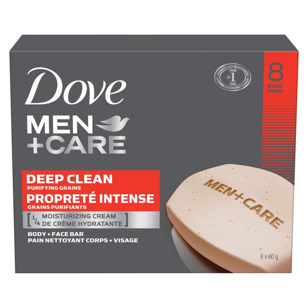Looking for a men's bar soap that cleanses while also helping protect from dry skin? Dove Men+Care Clean Comfort Body and Face Bar was developed for men's skin. With 1/4 moisturizing cream, this refreshing mild formula rinses off easily and thoroughly cleans skin without leaving it feeling dry or tight like soap can. Dove is the #1 brand of soap or cleansing bar recommended most often by dermatologists. Regular men’s bar soap can often leave skin feeling tight and dry, but Dove Men+Care Deep Clean Body and Face Bar helps maintain skin’s moisture to provide skin comfort and refreshment. Plus, its formula is mild and gentle enough to use on your face. To use Dove Men+Care Deep Clean Body and Face Bar, wet the body bar in the shower and massage into your face and body to create a light foam before rinsing thoroughly. The lather rinses cleanly away without leaving behind a greasy feel. Dove Men+Care Deep Clean Body and Face Bar has a classic scent, and is clinically proven to fight skin dryness. This body bar not only cleanses, but also leaves your skin feeling healthy and strong. Use it with the entire line of Dove Men + Care products for the perfect grooming regimen, such as the Dove Men+Care Sculpt & Texturize Styling Paste, Dove Men+Care Fresh Clean Fortifying Shampoo & Conditioner 2in1 and Dove Men + Care Extra Fresh Antiperspirant Stick. Dove does not test on animals. All Dove products are certified Cruelty-Free by PETA.