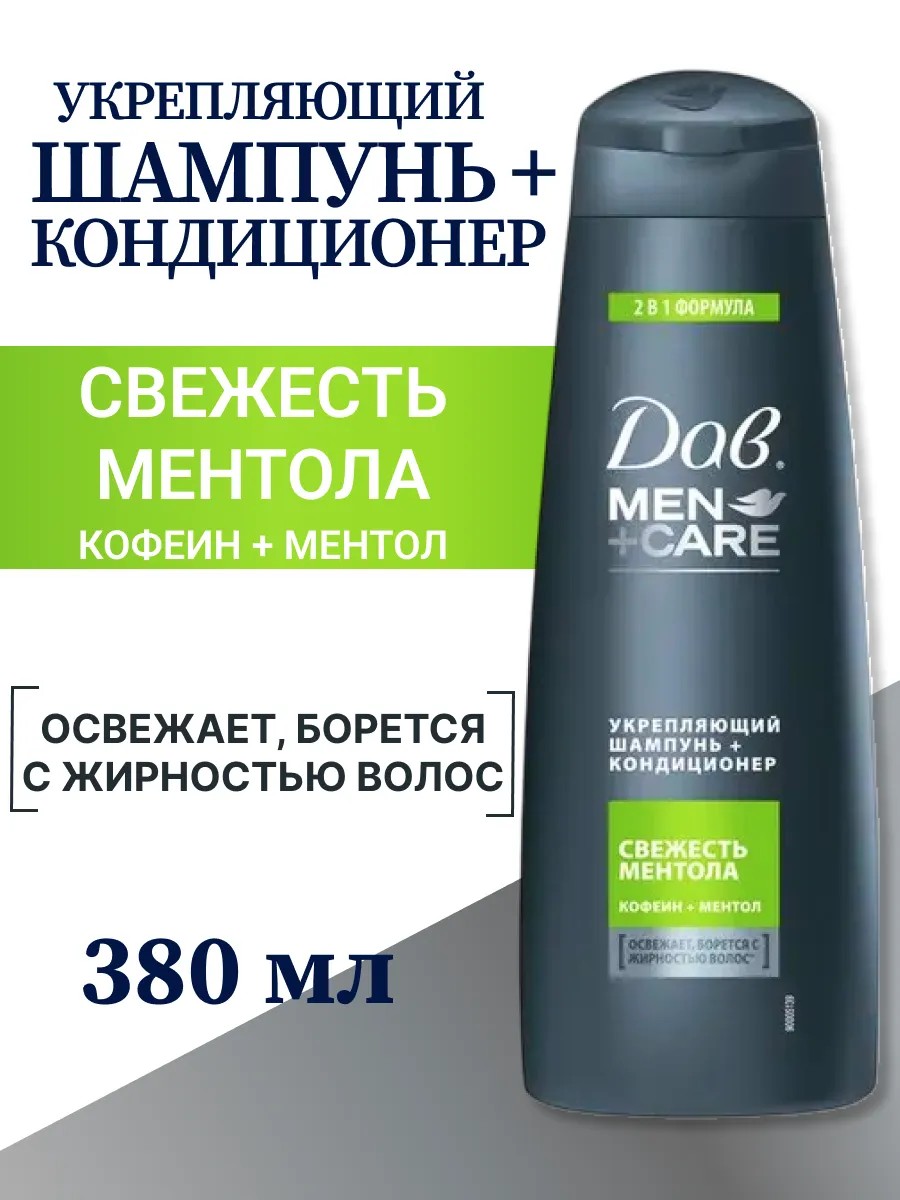 Шампунь Дав Men + Care Укрепляющий свежесть ментола очищает кожу головы, придает волосам здоровый блеск 380 мл.