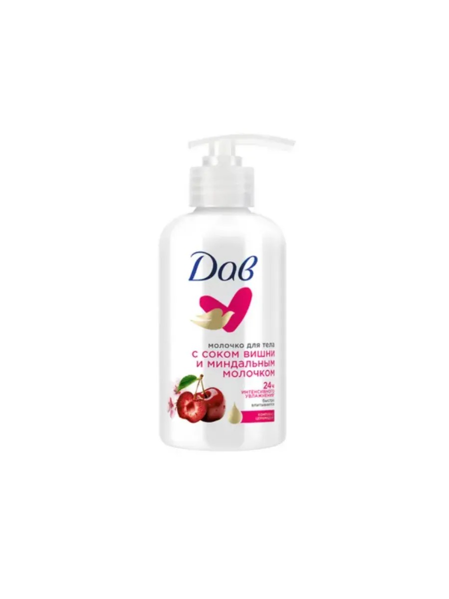DOVE Молочко для тела сок Вишни и Миндальное молочко, 280 мл. Новинка для ухода за телом с невесомой текстурой и утонченным ароматом. Молочко для тела дарит интенсивное увлажнение для тела на 24 часа, заботится о коже и делает ее нежной, гладкой и бархатистой. Средство представлено в удобном формате молочка для тела с дозатором. Наслаждайтесь роскошными текстурами и ароматами вместе с уходовой косметикой Дав и подарите качественное питание вашей коже.