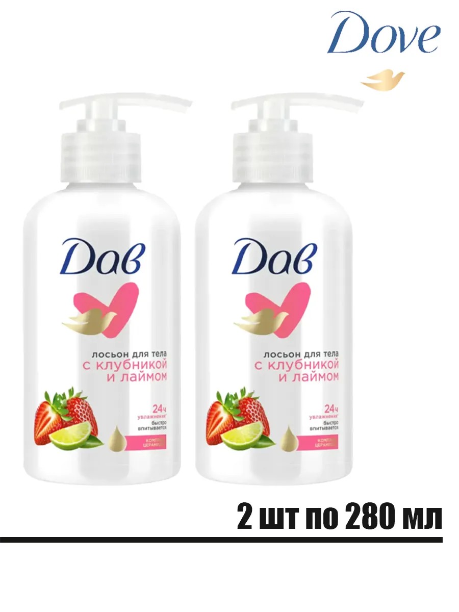 DOVE Лосьон для тела с клубникой и лаймом, 2 шт по 280 мл.