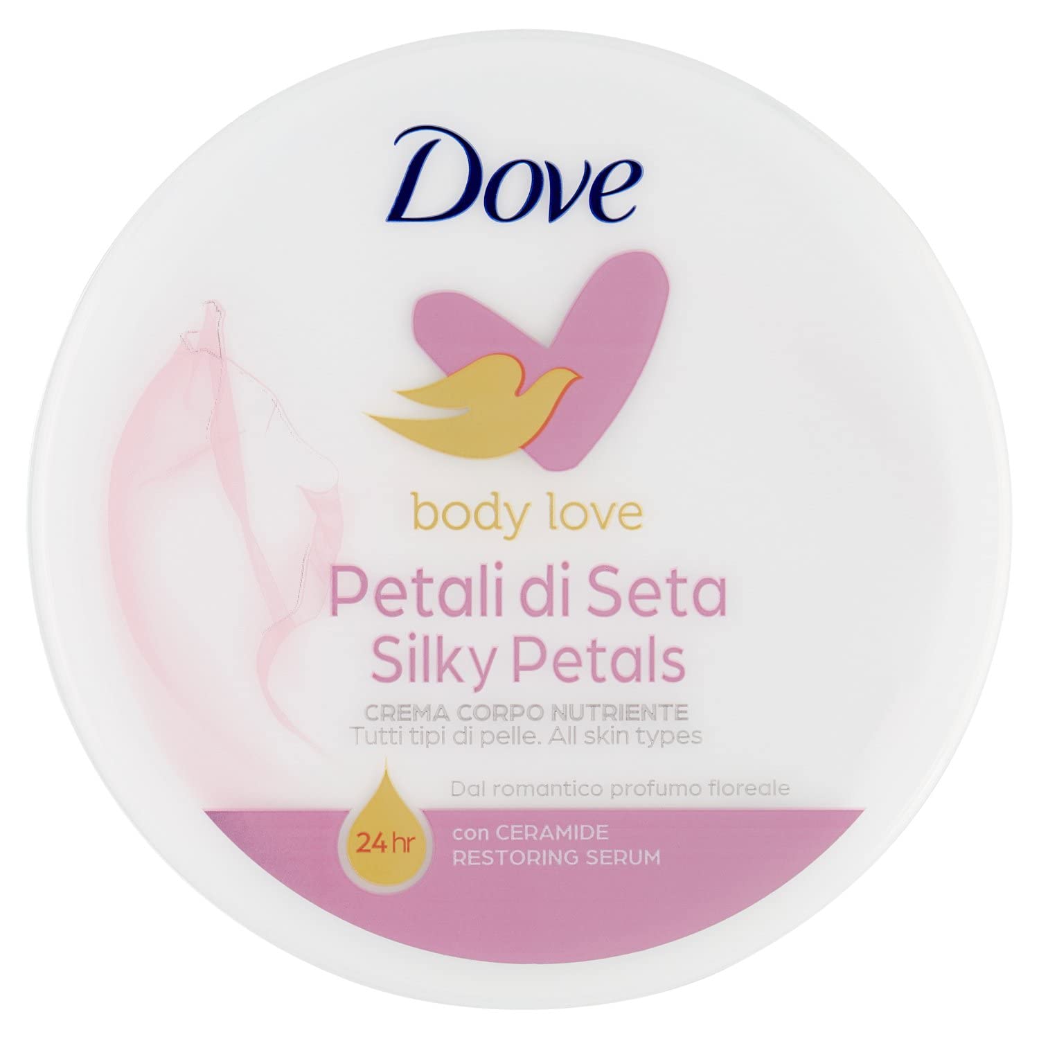 Brand: Dove. Silk Sheet Body Cream: Dove Petali Nourishing Silk Sheet Body Cream is suitable for all skin types, transforming application into an act of love on your body.Marque: Dove. Crème pour le corps aux feuilles de soie : La crème pour le corps nourrissante en soie Dove Petali convient à tous les types de peau, transformant l'application en un acte d'amour sur votre corps.