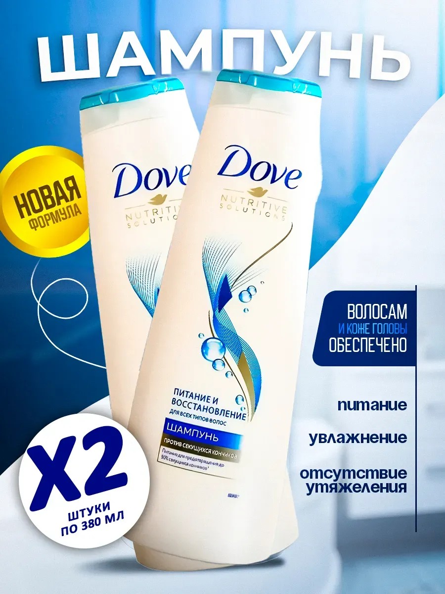 | Комплектация | Шампунь Dove питание и восстановление для волос 380 мл 2 шт |
