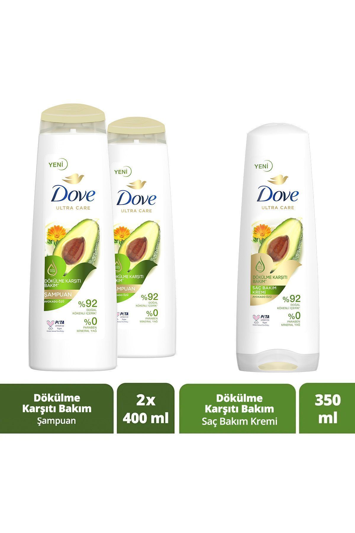 The 100 recyclable bottle of Dove Avocado Extract Anti-Loss Shampoo, which stands out among Dove's shampoo types, is designed with inspiration from the value of nature and Dove. Dove Avocado Extract Anti-Hair Loss Shampoo, which cares about nature as much as it does about you, has been approved by PETA that it has not been tested on animals. The formula of Dove Avocado Extract Anti-Hair Loss Shampoo is vegan.