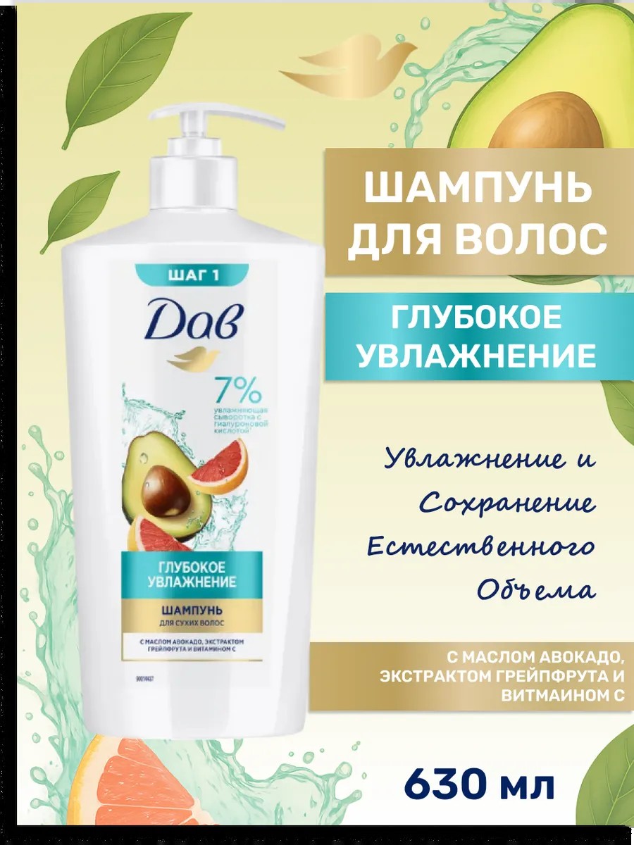 Dove Шампунь для волос женский увлажняющий с авокадо 630 мл