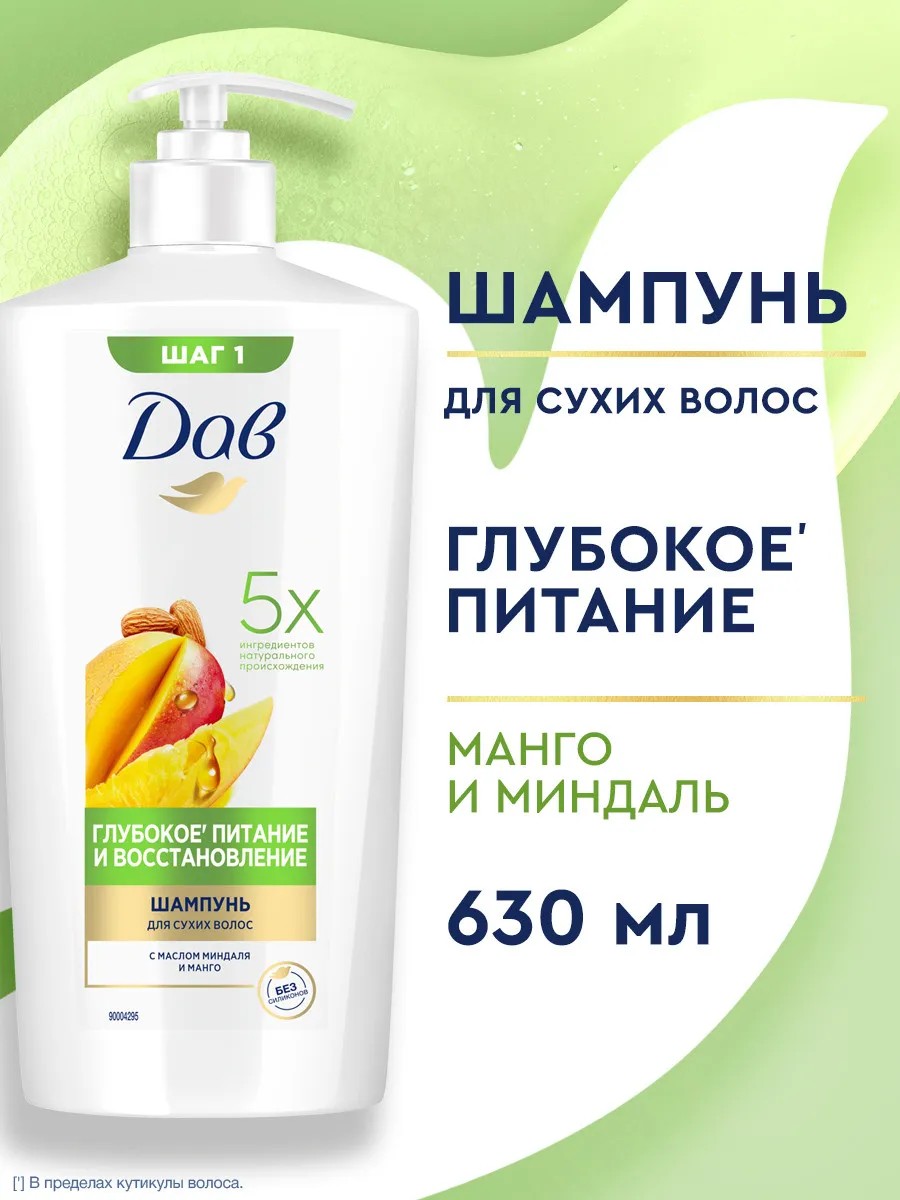 Для восстанавливающего ухода за сухими волосами попробуйте очищающий шампунь Дав с манго и маслом миндаля. Шампунь для волос женский из серии Глубокое' питание и восстановление обеспечивает локонам оптимальный уход.